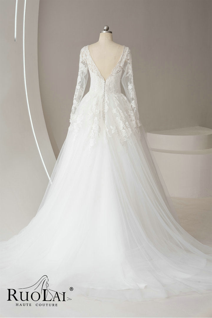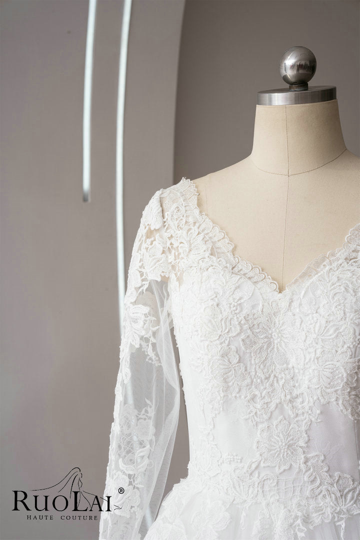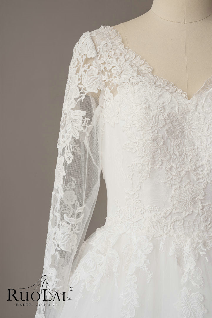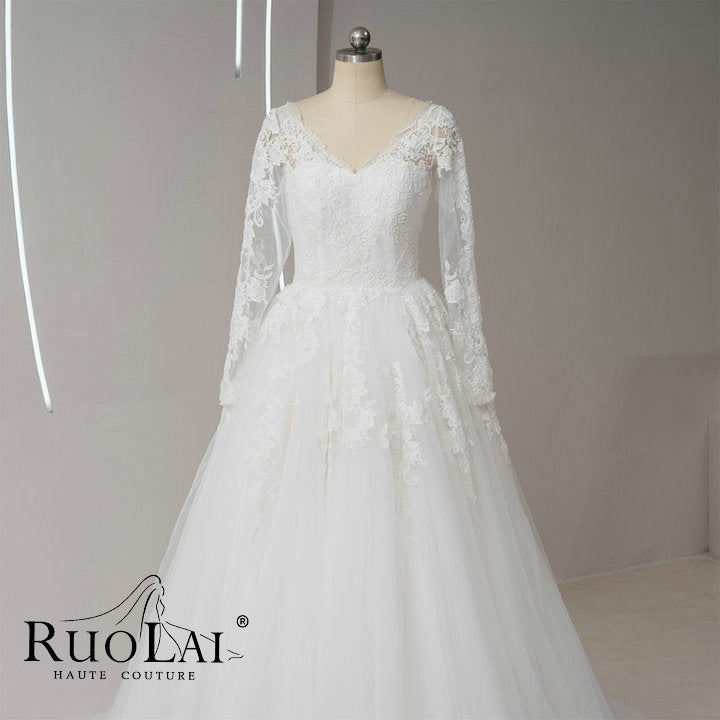 Luxury Long Sleeves Lace Appliques Wedding Dresses