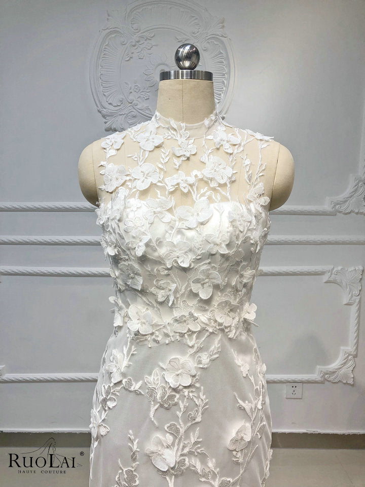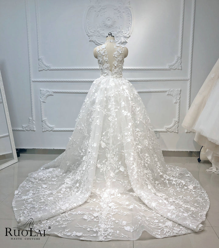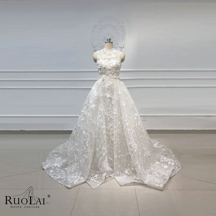 QW02151 Luxury O Neck Lace 2 in 1 Wedding Dress