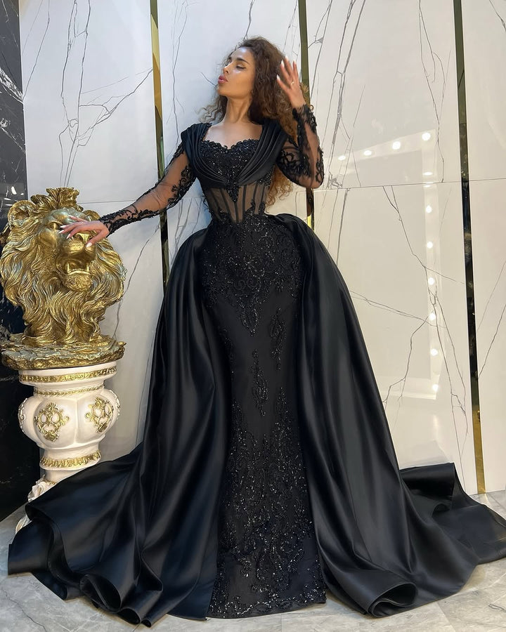 Luxury Satin Pleat Detachable Train Mermaid Prom Dress