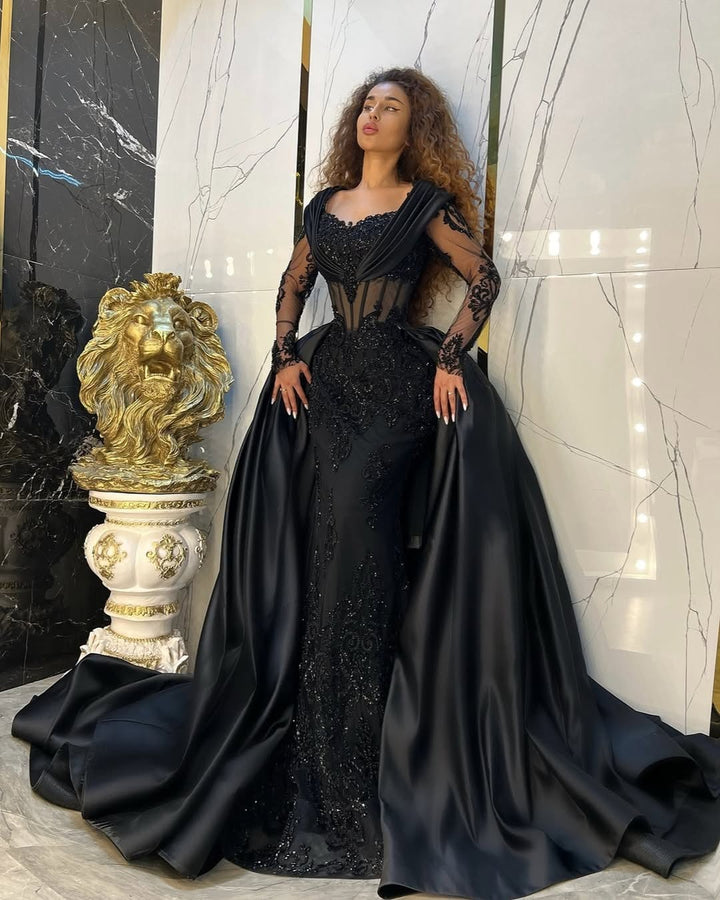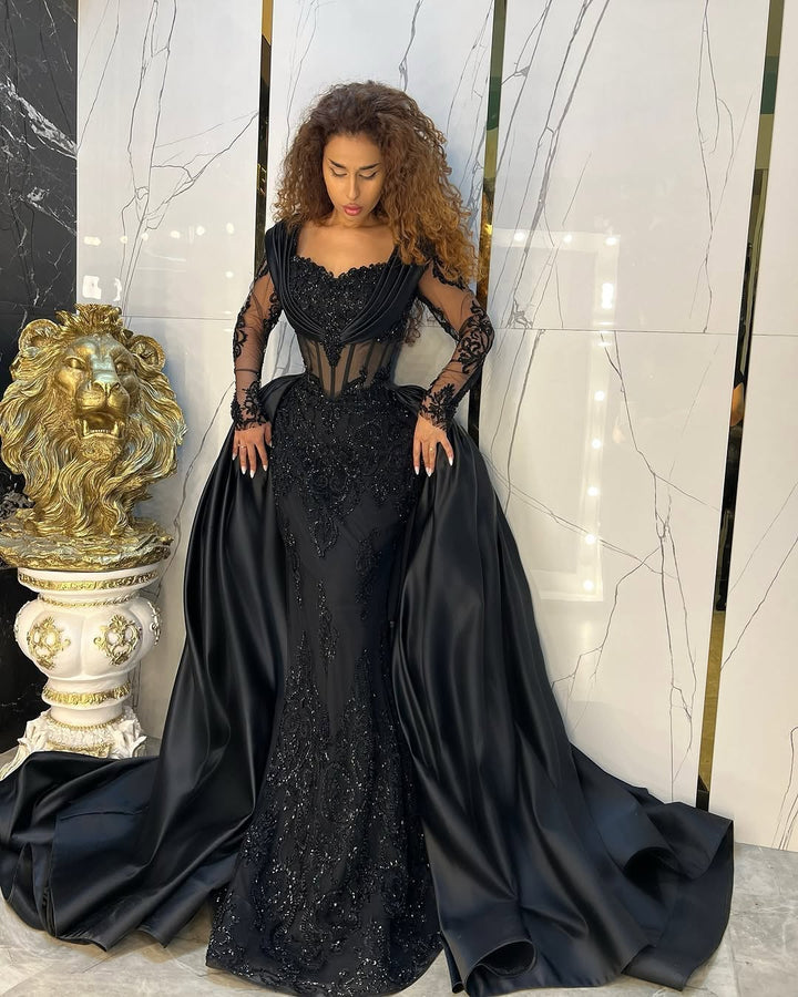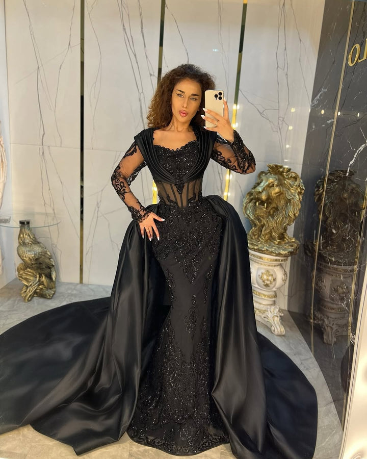 Luxury Satin Pleat Detachable Train Mermaid Prom Dress Elegant Maxi Beading Sequins Parties Prom