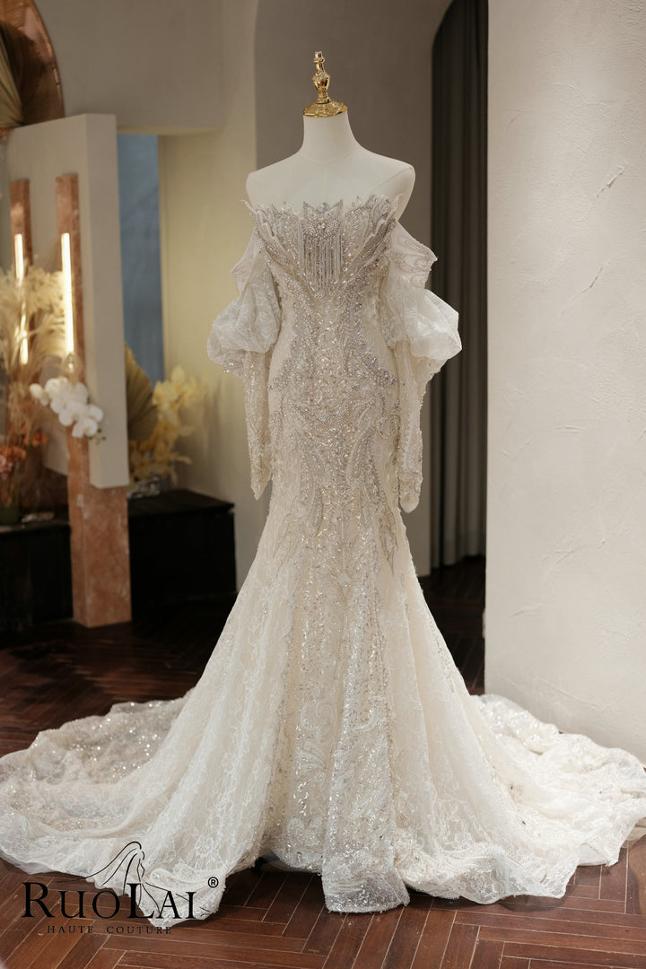 Luxury Strapless Mermaid Wedding Dresses with Train Long for Women Brides
