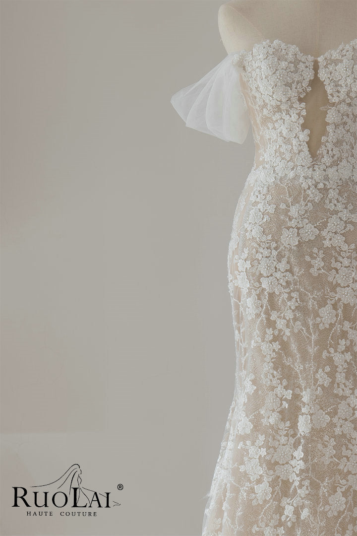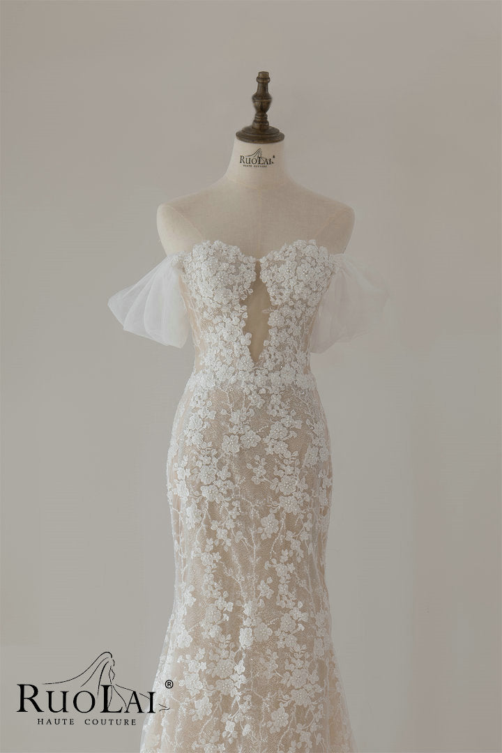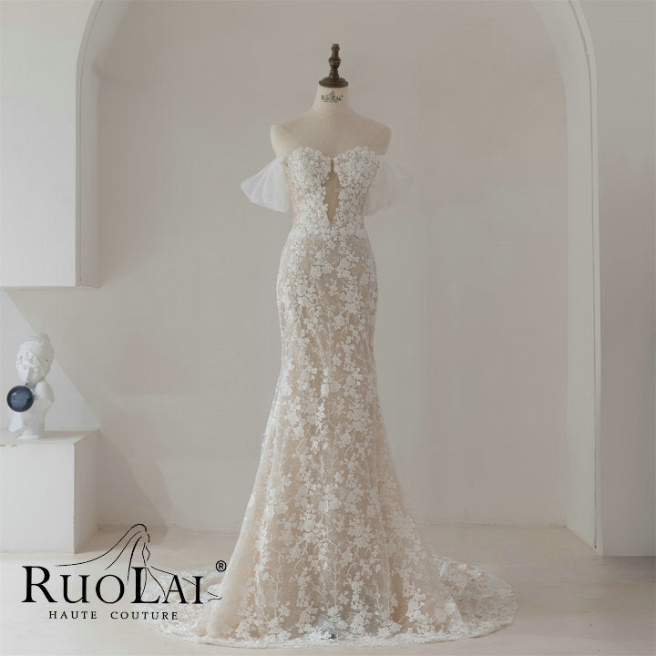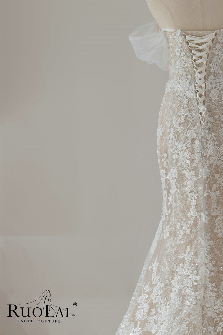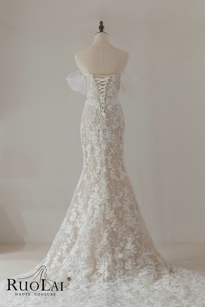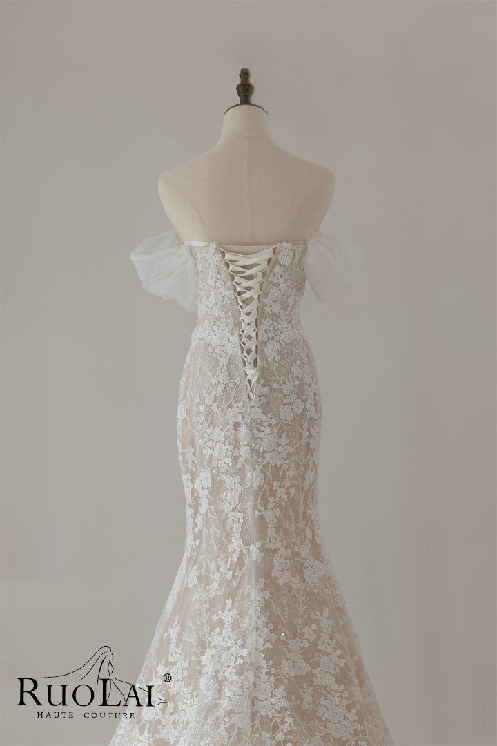 Luxury Sweetheart Neckline Long Dress for Wedding Mermaid Hollow Lace Appliques Short Sleeves Lace Up Wedding Dress