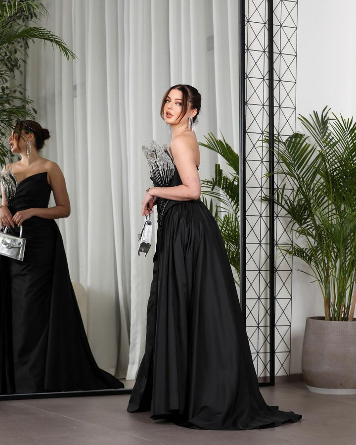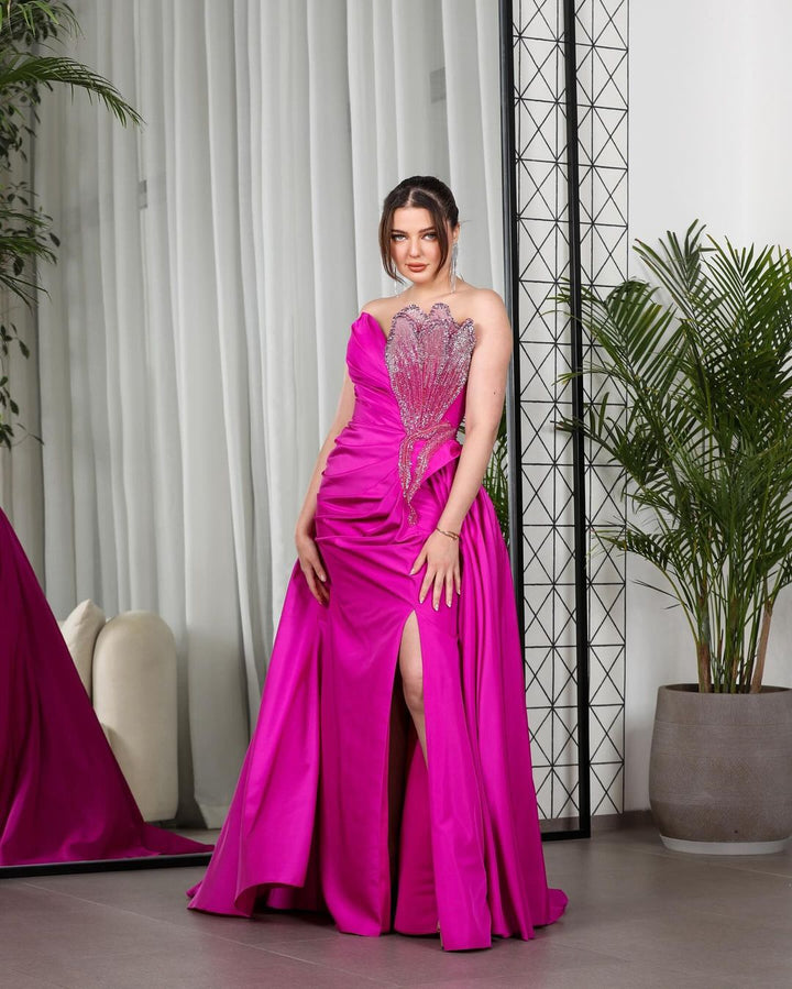 Luxury Sweetheart Off Shoulder a Line Satin Ball Gown Evening Dress Beading Front High Slit Formal Party Dress