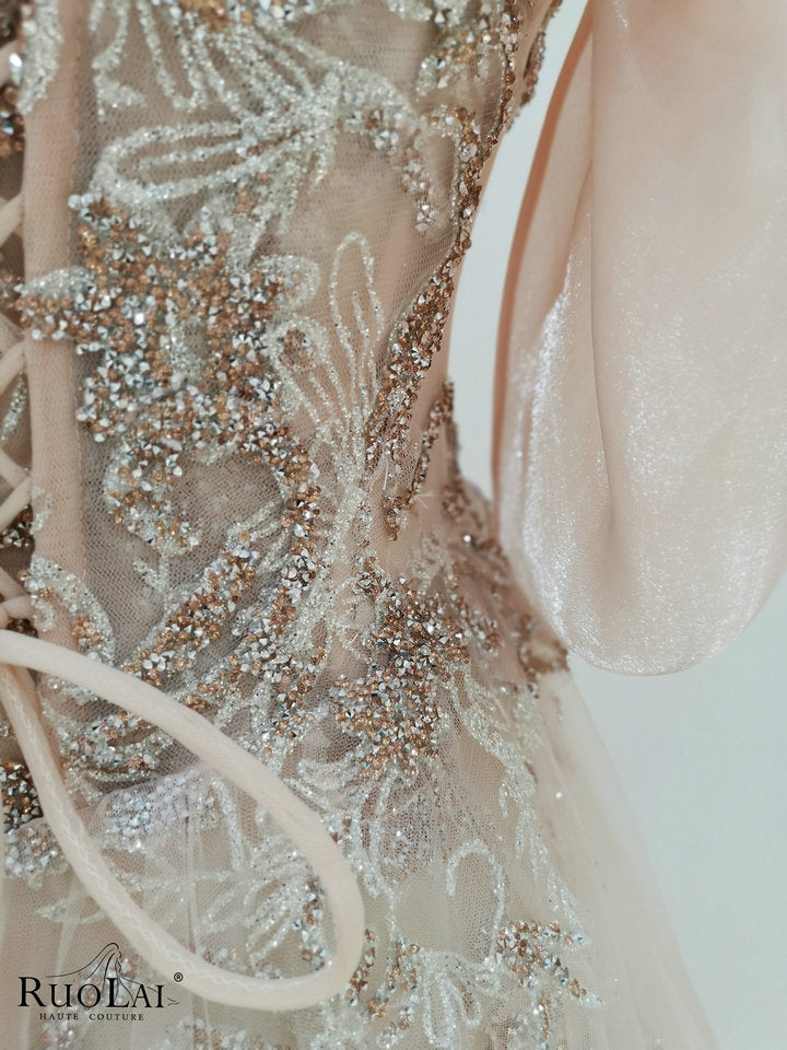 Elevate your evening look with this luxurious pink evening gown. Exquisitely crafted and stunningly embellished, this gown features a delicate pink hue that perfectly catches the light. The matching cape adds an elegant touch, making it the perfect choice for a grand entrance. Perfect for formal occasions, this gown blends sophisticated glamour with timeless style, ensuring you stand out with confidence and elegance.