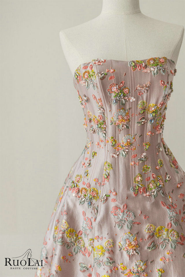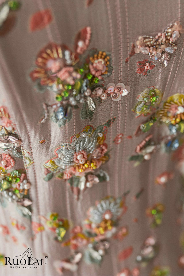 This luxurious beaded pink evening gown, featuring a unique strapless design and intricate beading, embodies exquisite craftsmanship and elegance. Ideal for sophisticated occasions, this gown features a slim fit and elegant silhouette, seamlessly blending traditional luxury with modern style for an unforgettable evening look.