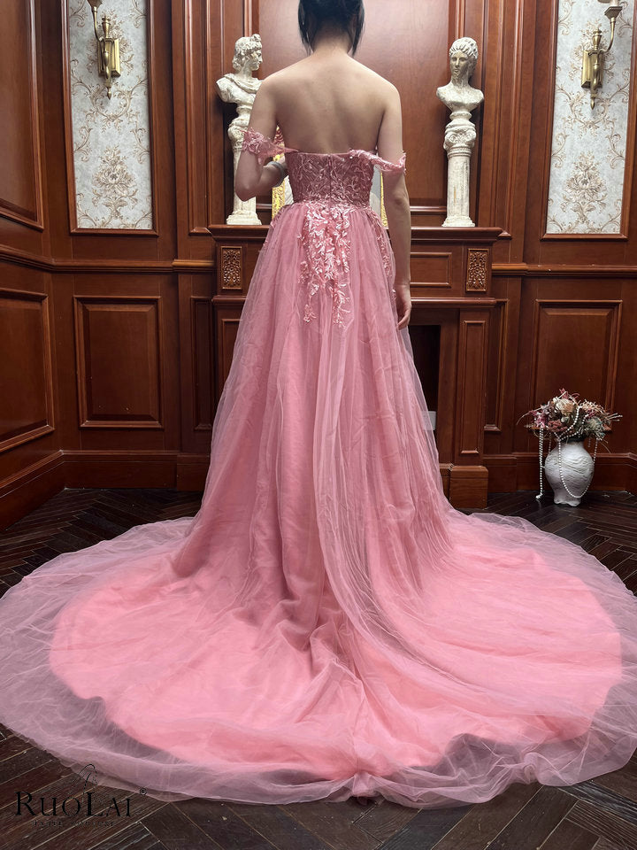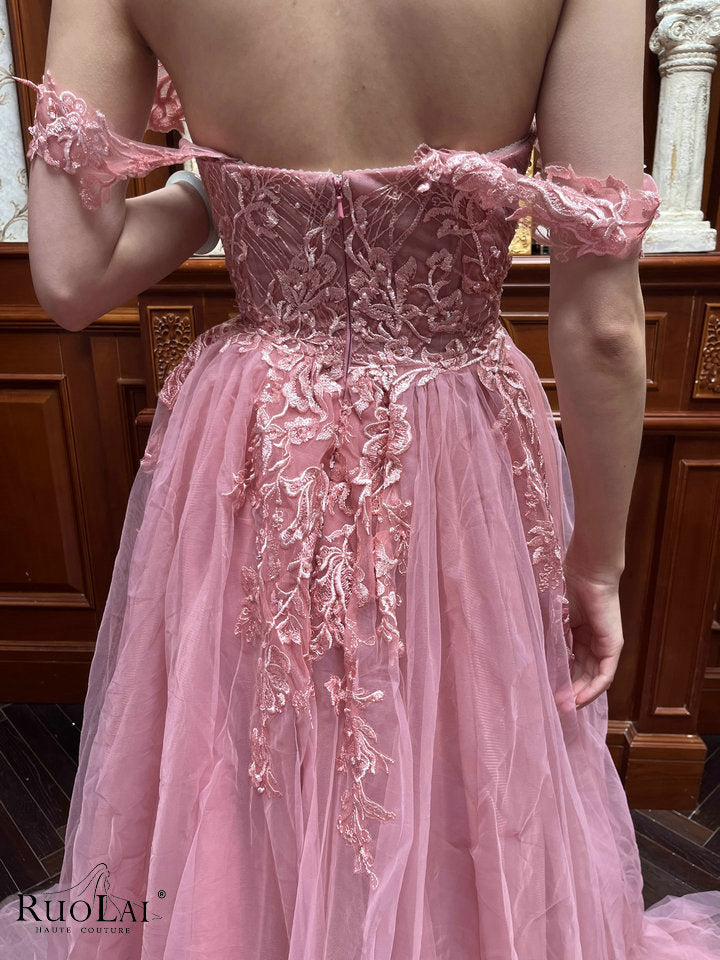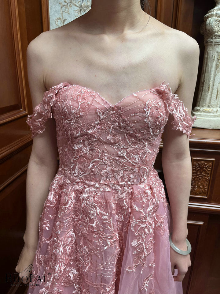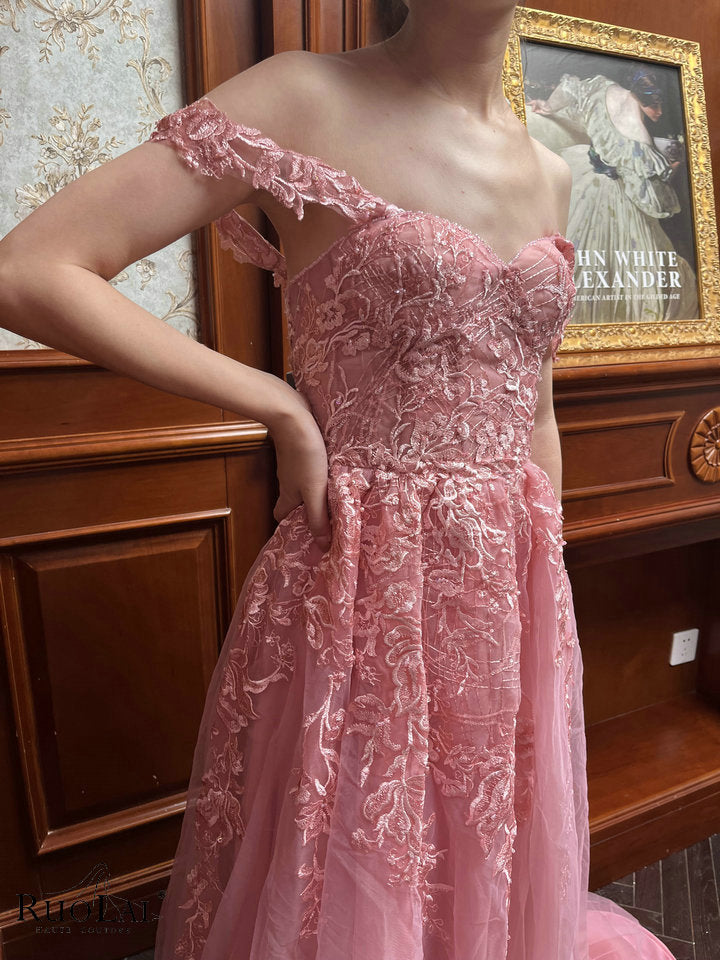 This elegant pink evening dress features a flattering sweetheart-neck design and a A-line silhouette that enhances your figure. The delicate lace appliques add a sophisticated touch, creating graceful movement and a refined look. Perfect for formal occasions, this dress combines classic style with modern elegance to ensure you stand out with confidence.