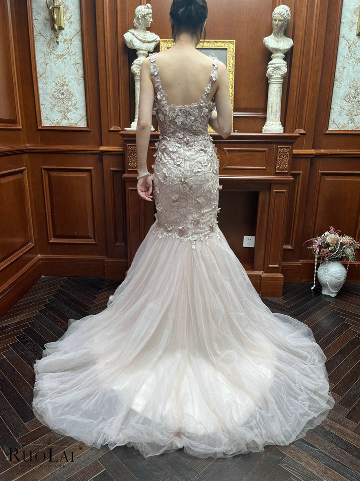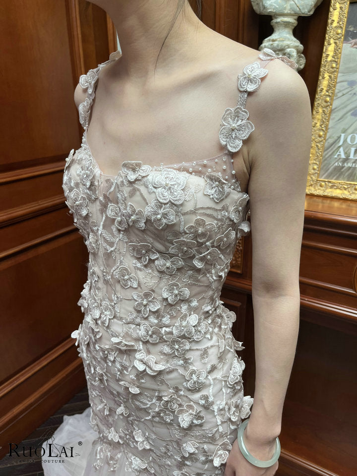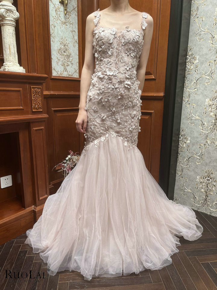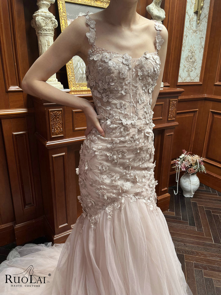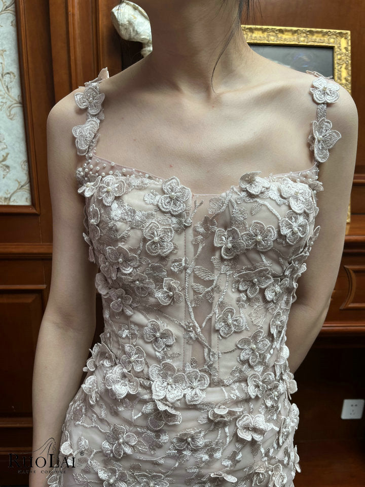 This elegant elegant light pink sweetheart mermaid evening dress features delicate 3D floral embellishments that add depth and sophistication to its design. Making it ideal for formal occasions. Its flattering silhouette complements various body types, ensuring a graceful and polished appearance. Perfect for those seeking a refined and stylish look.