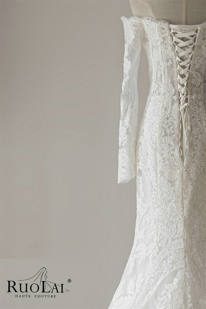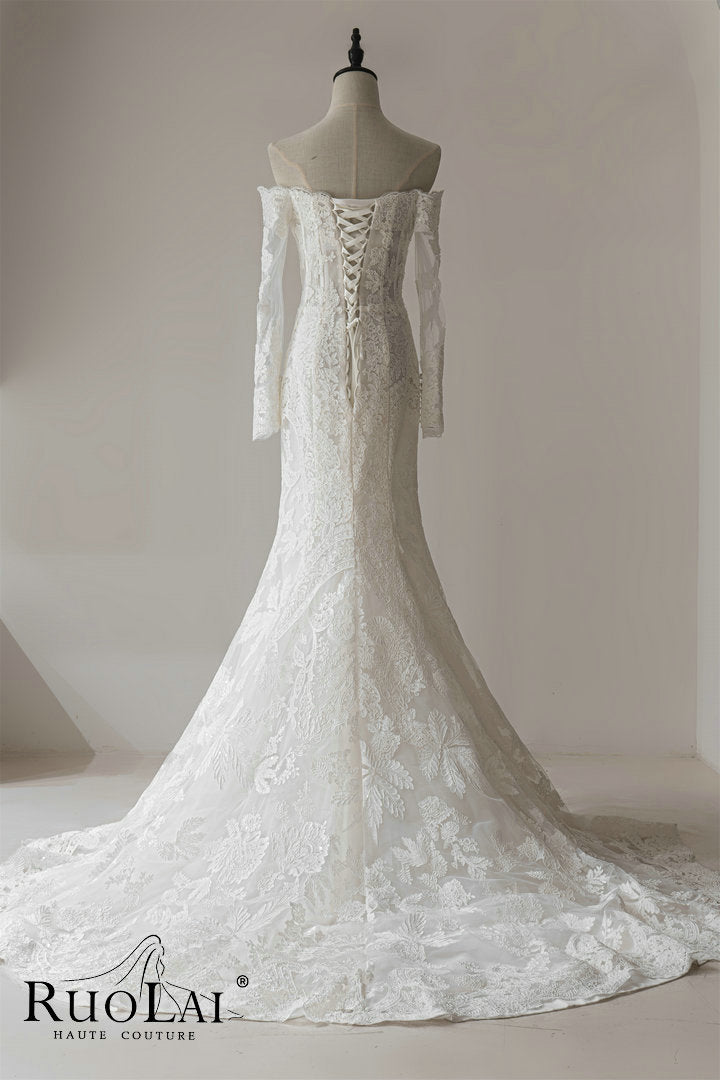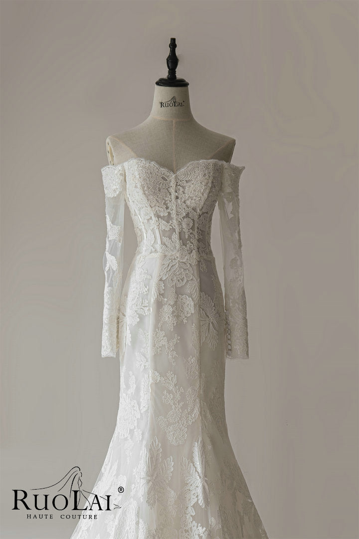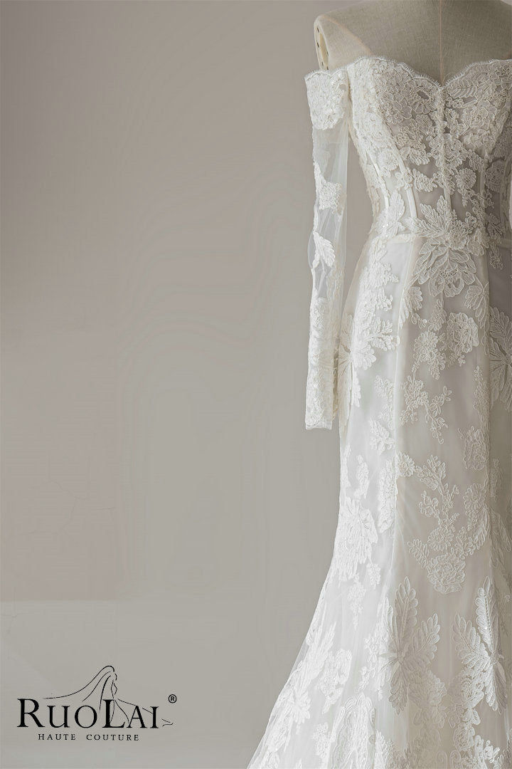 Modern Off The Shouder Long Sleeve Wedding Dresses for Women Pretty Mermaid High Quality Lace Appliqued Sweetheart Neckline Bridal Gowns