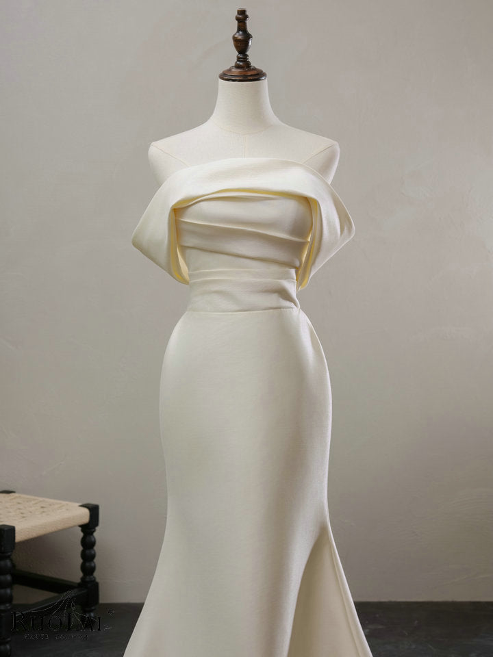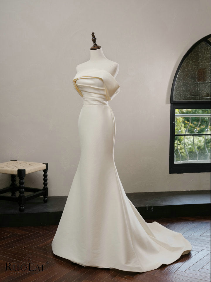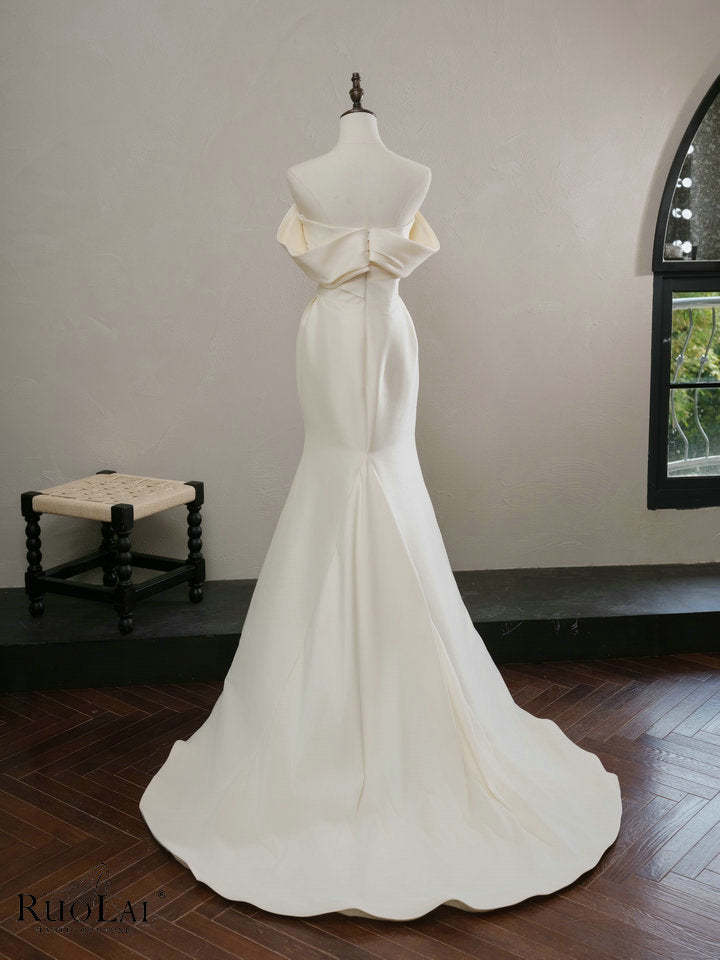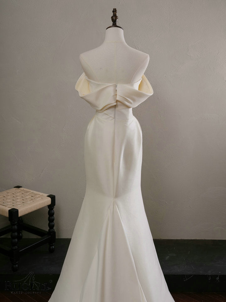 Simple Off-shoulder Satin Wedding Dresses Strapless Pleat Mermaid Bridal Gowns for Women