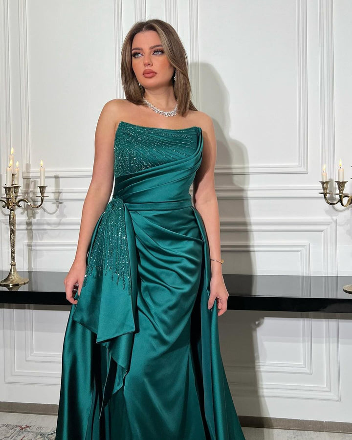 New Boat Neck Splicing Sequin Off-the-shoulder Pleat Evening Gown Elegant Fashion Mermaid Dress for Women Evening Party Dresses