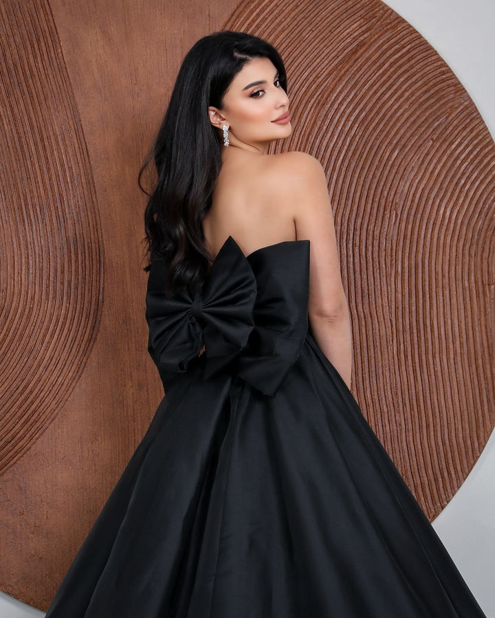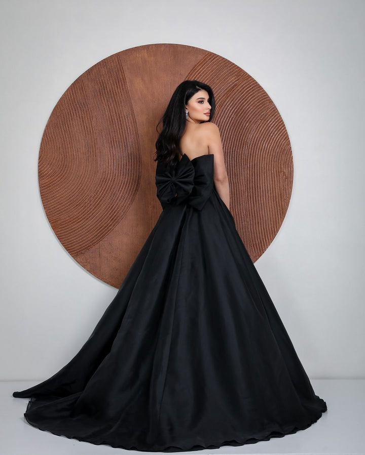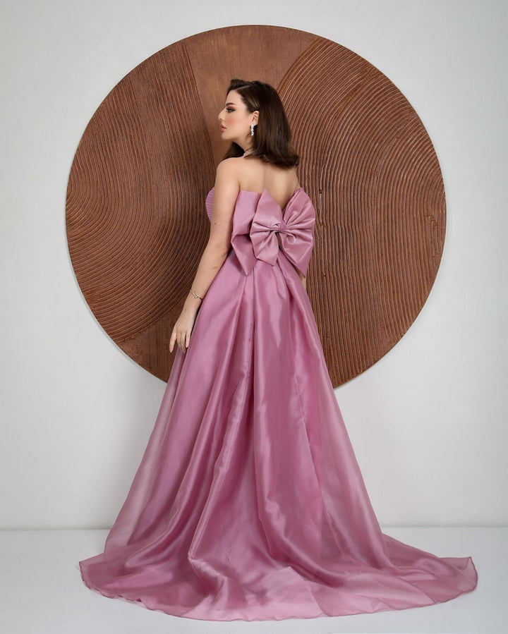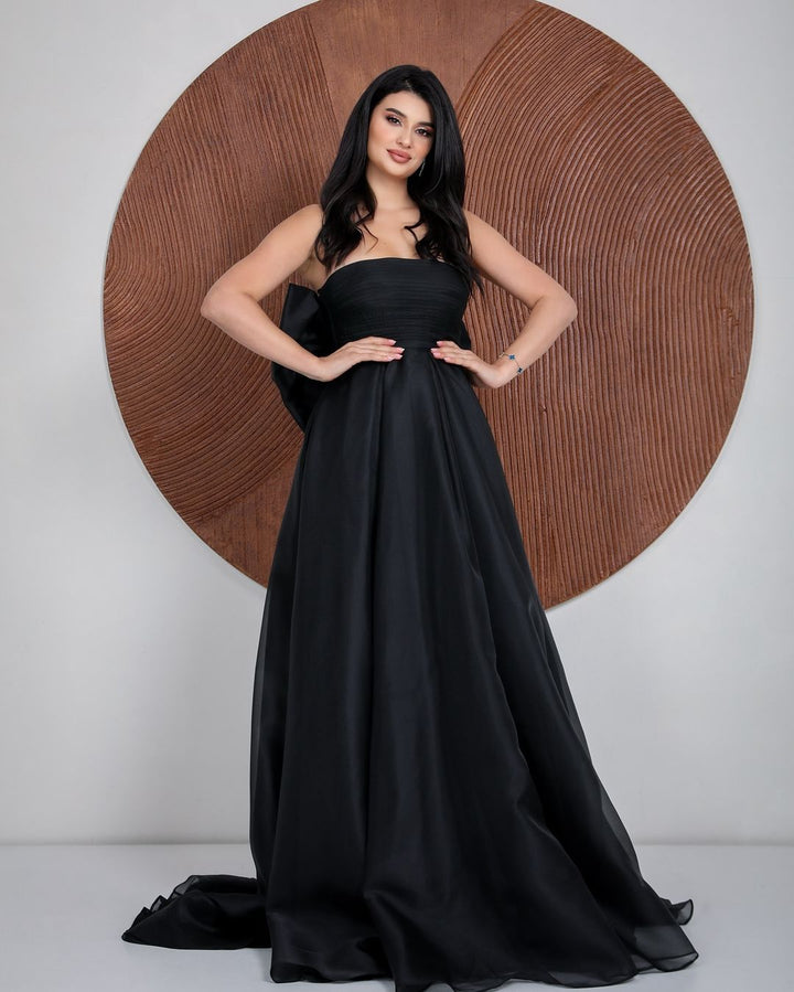 Custom Strapless Organza Evening Dresses Fabrics Off Shoulder Back with Bow African Dresses Women Party