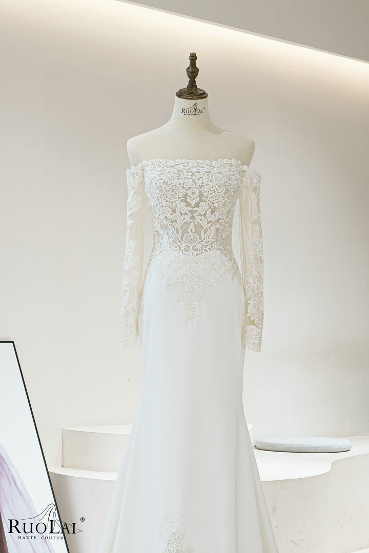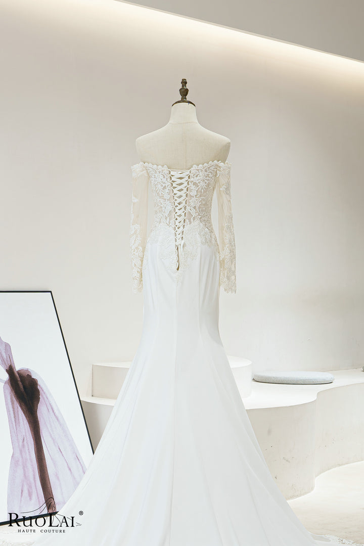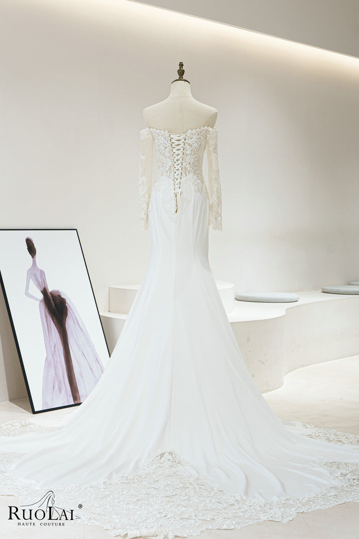 Sexy Off The Shoulder Mermaid Crepe Fabric Boho Wedding Dresses