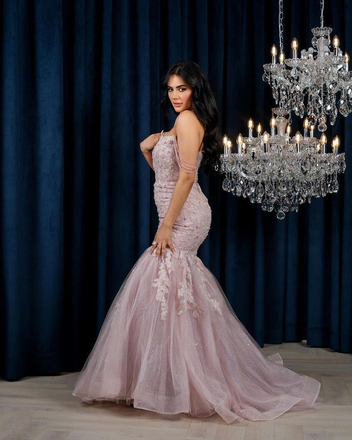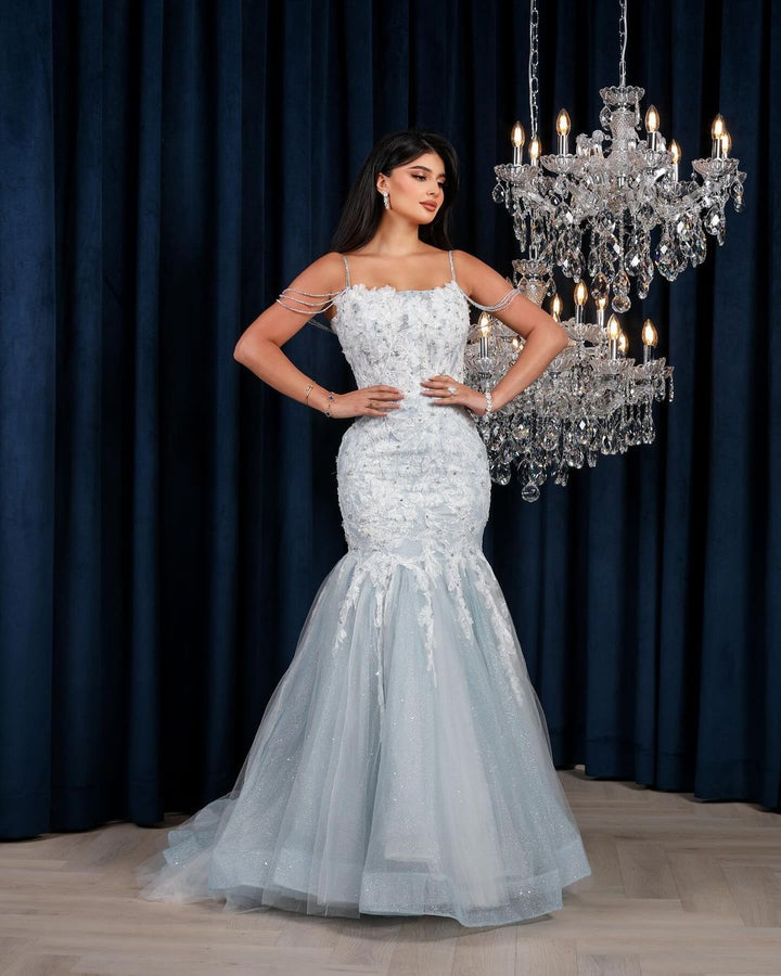 High Quality Shiny Tulle Beading Off The Shoulder Trumpet Spaghetti Strap Prom Dress Classic Formal Fashion Sizes Available Matching