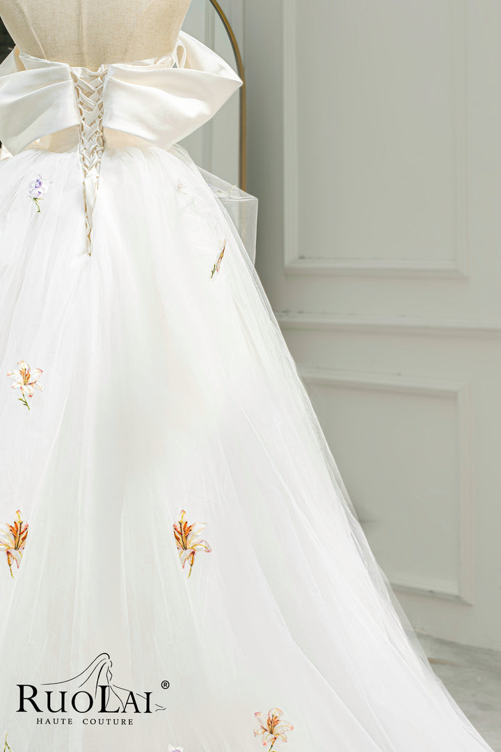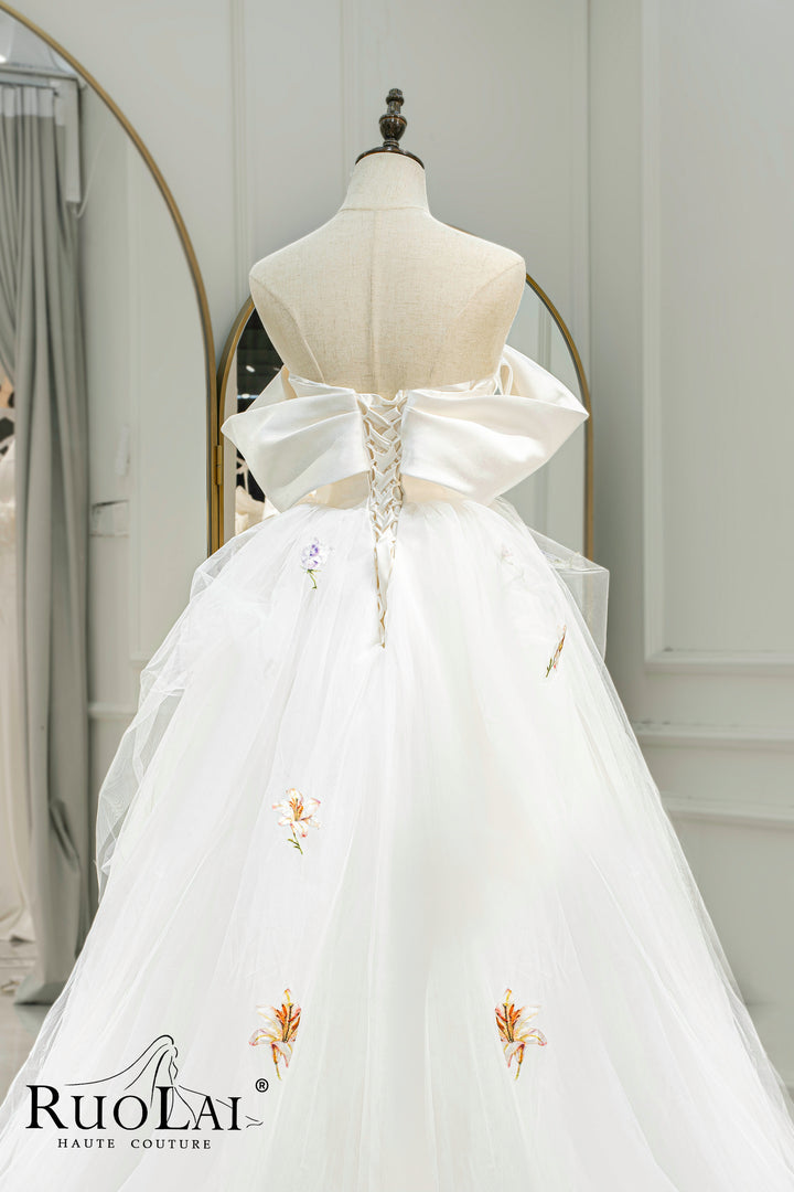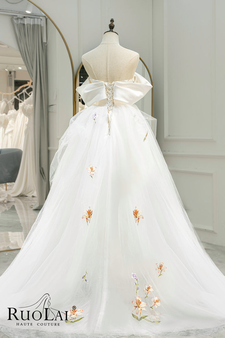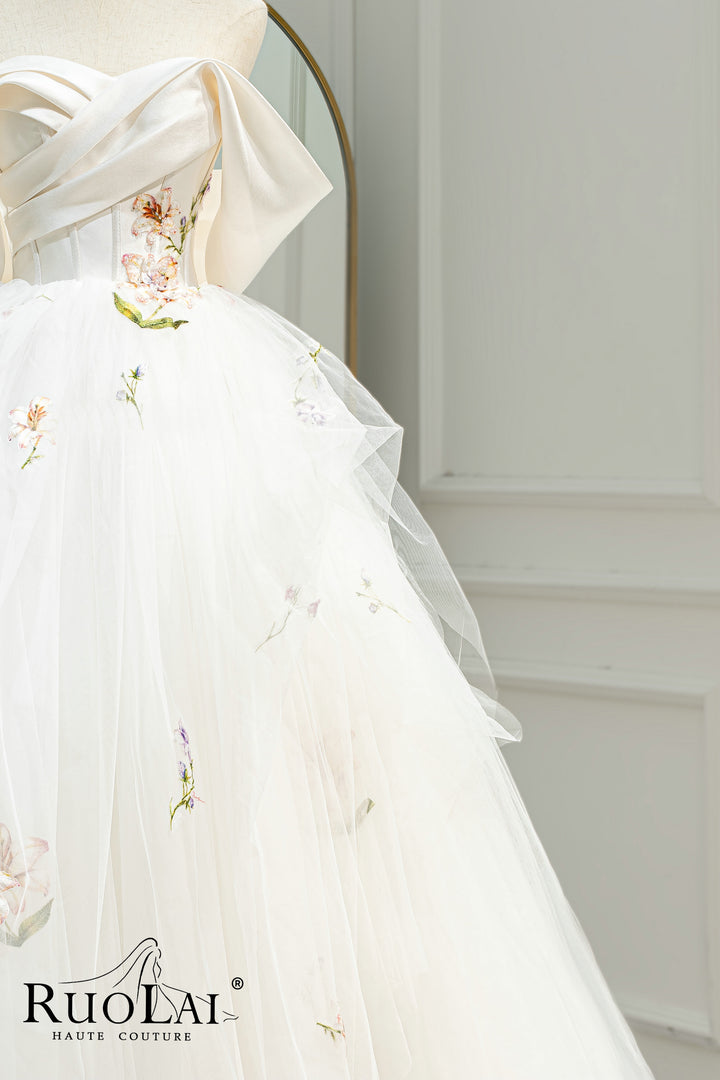 Pretty Off The Shouder Embroidery Tulle Pricess Wedding Bride