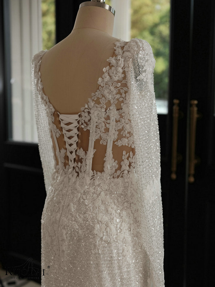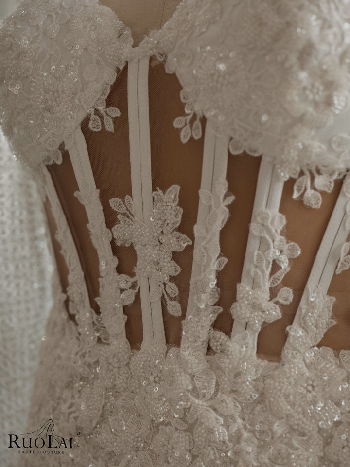 QW02175 Corset Detachable Overskirt Beading Lace African Wedding Dress