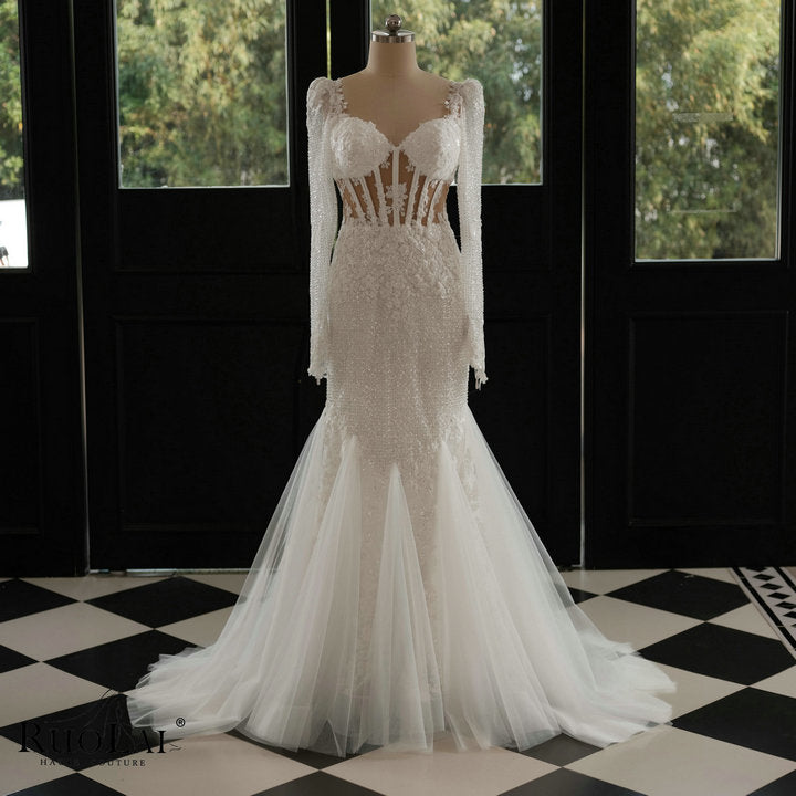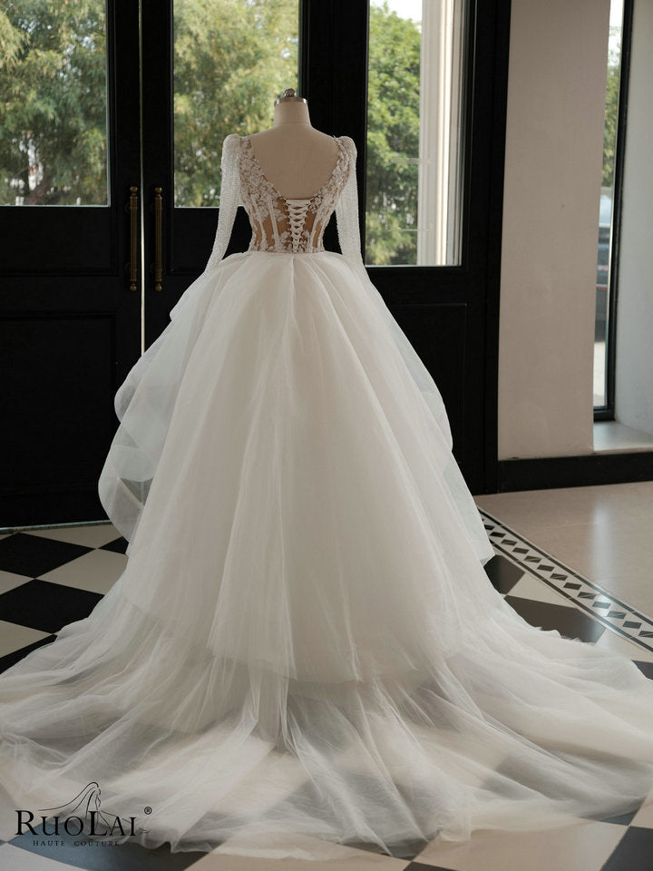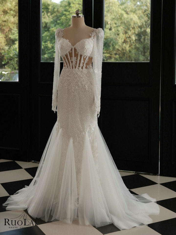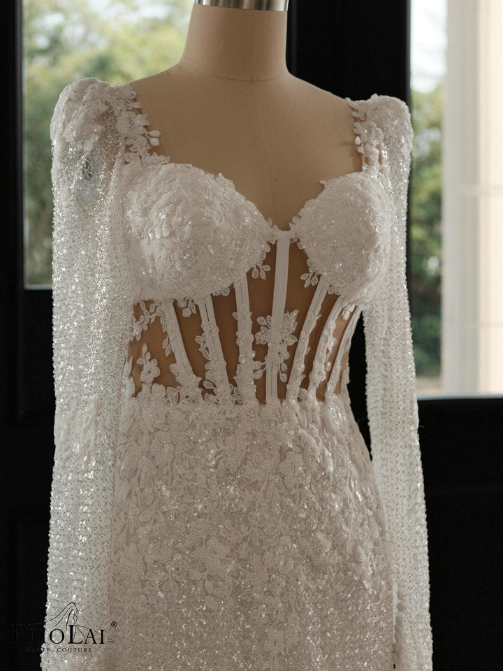 Introducing this elegant and luxurious two-in-one wedding dress. Featuring a stunning sweetheart neckline and long sleeves, this gown exudes sophistication and style. Feel like royalty in this exquisite Arabian wedding dress, perfect for weddings and formal occasions. This gown will showcase your unique style and put you in the spotlight.