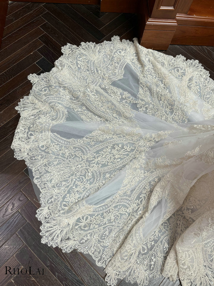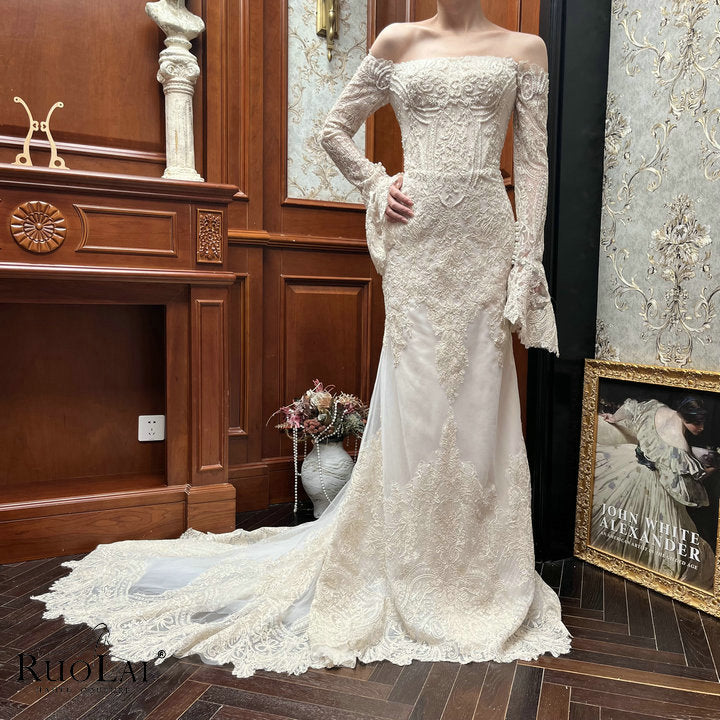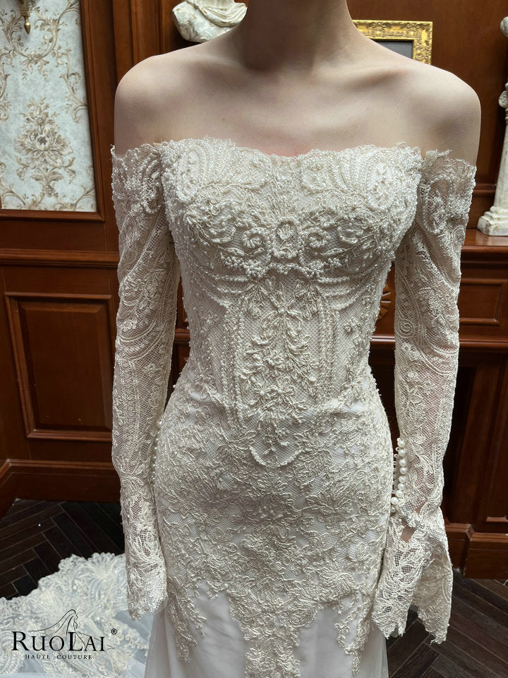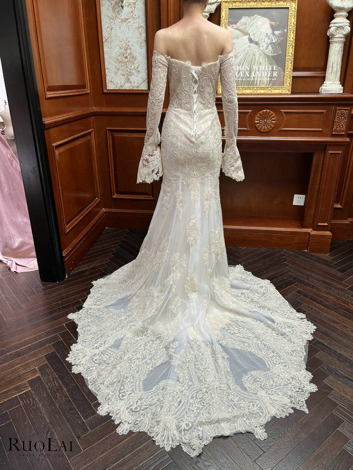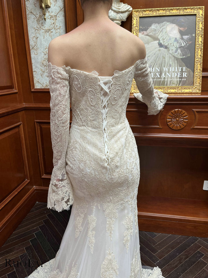 QW02203 Mermaid Off Shoulder Embroidered Lace Dress for Wedding