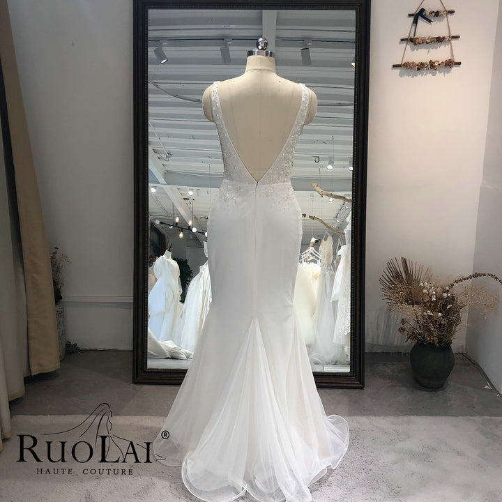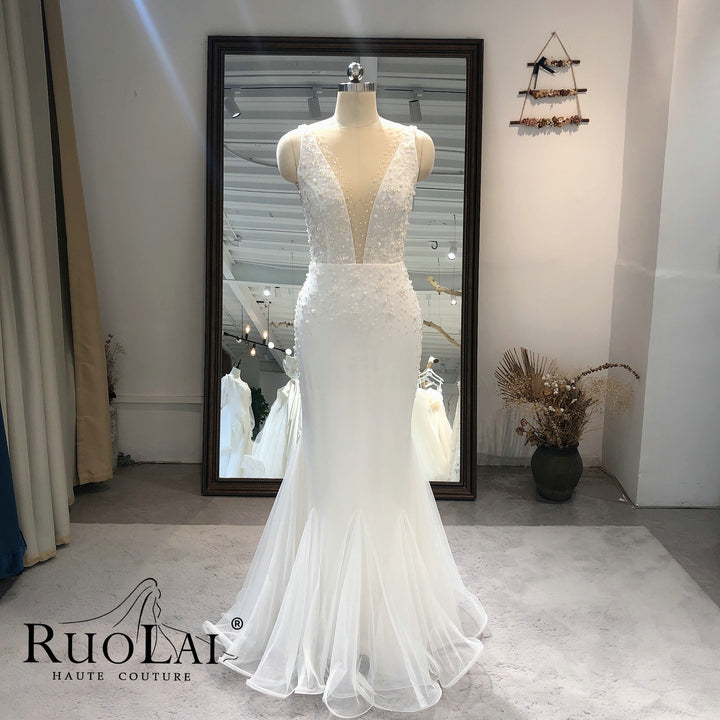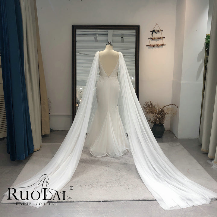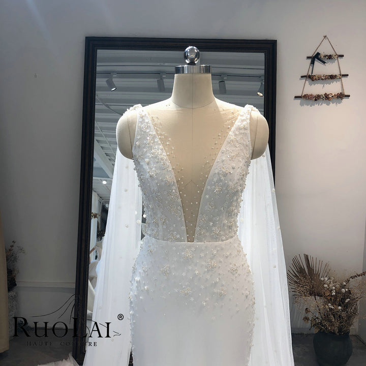 Sexy Deep V Neck with Shawl Tulle Mermaid Bridal Gown