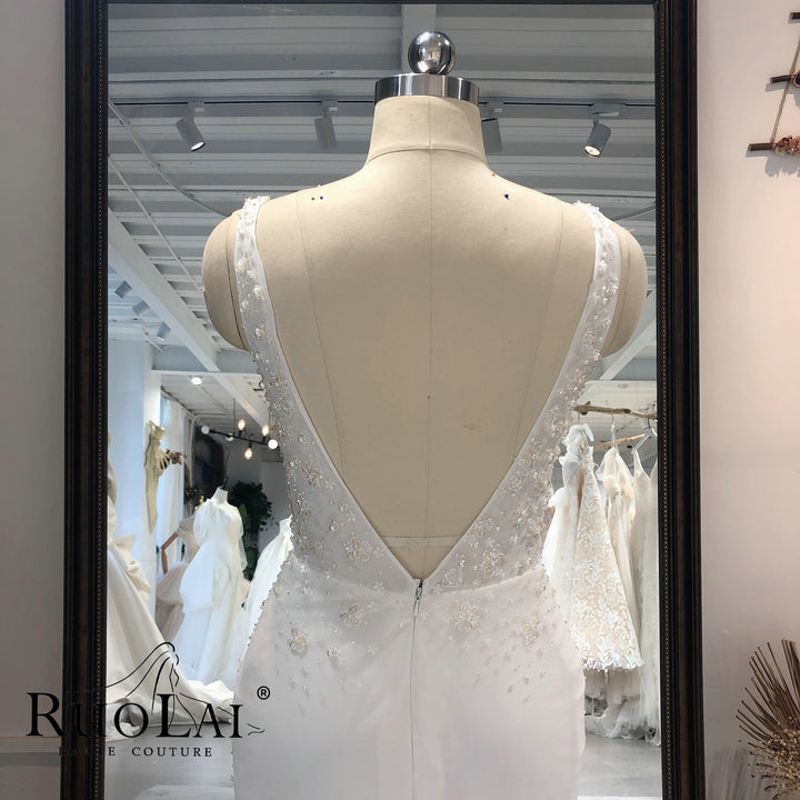 Glamorous deep v neck short sleeve bridal gowns Lace Appliques backless with long train mermaid vestidos de novia customized