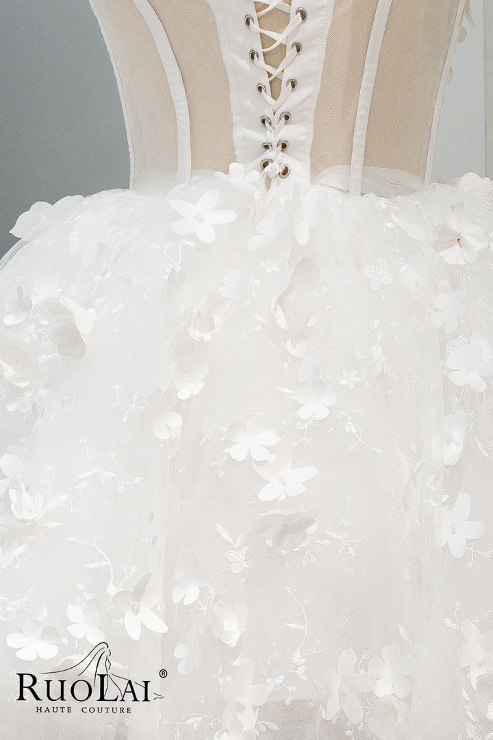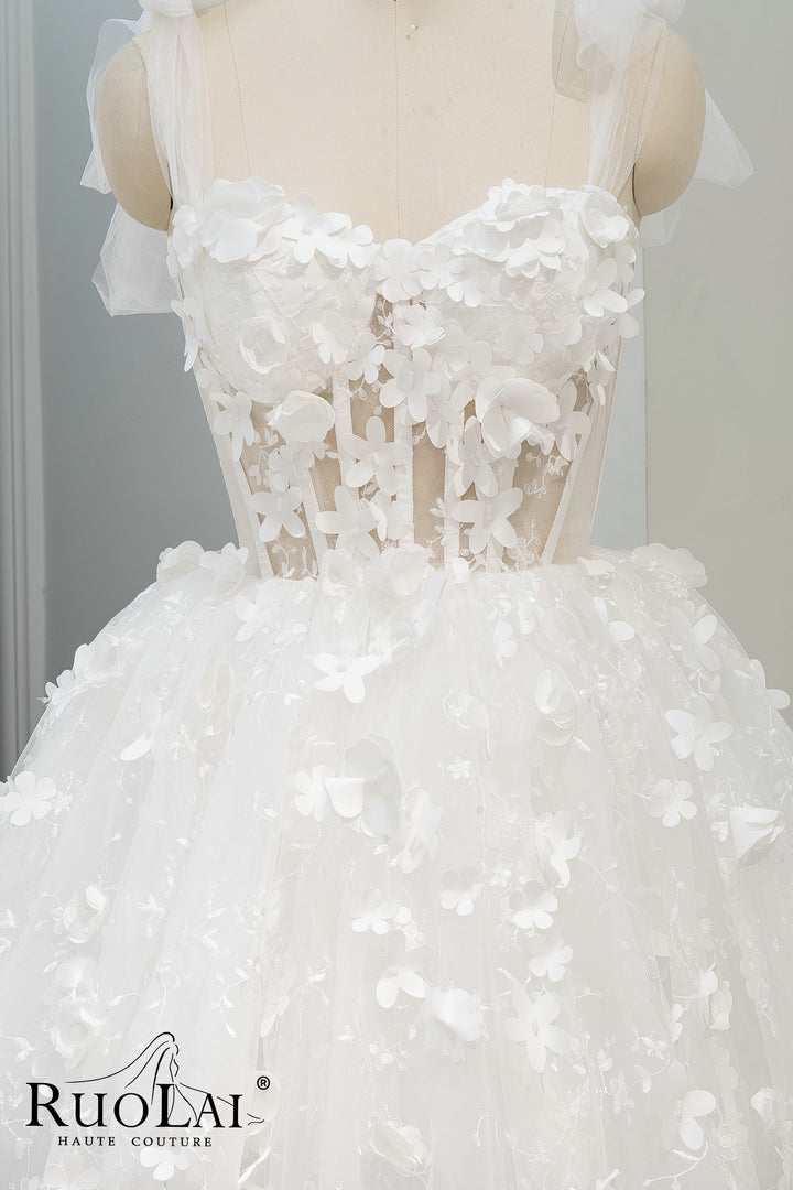 Sexy Spaghetti Strap Bow Tulle See-though Bodice Bridal Dress