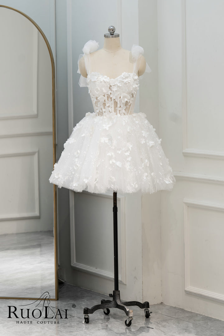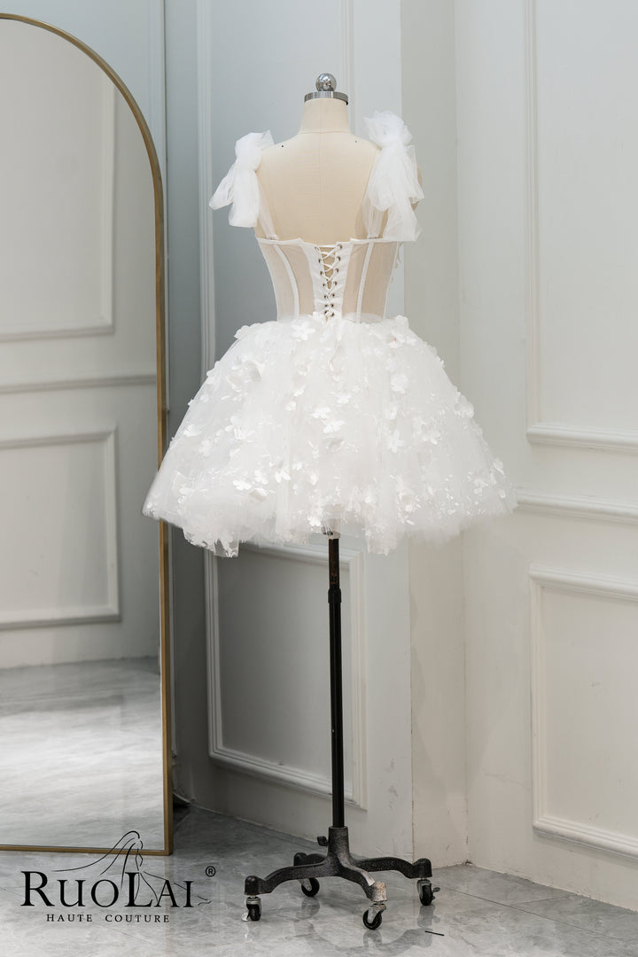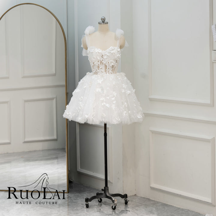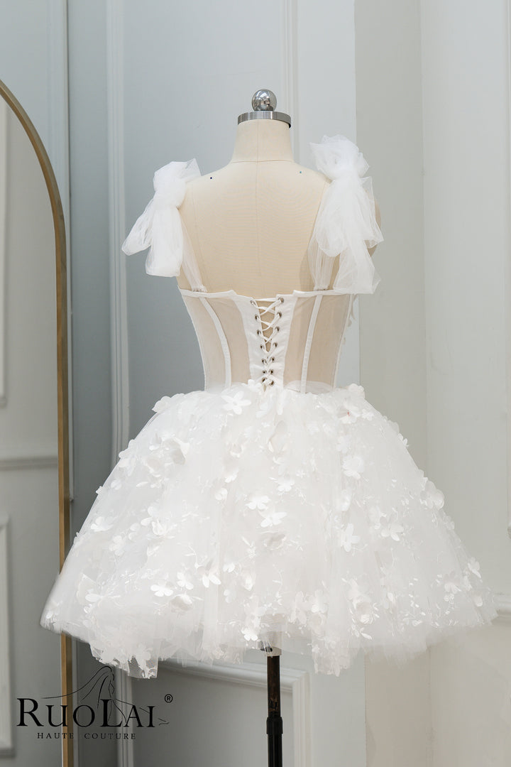 Elegant Spaghetti Strap Bow Sexy Mini Wedding Dresses for Women Appliques A-line Tulle Sweetheart Neckline See-though Bodice Bridal Dress