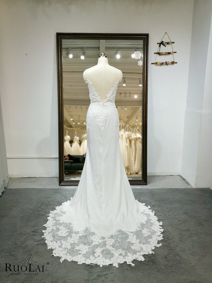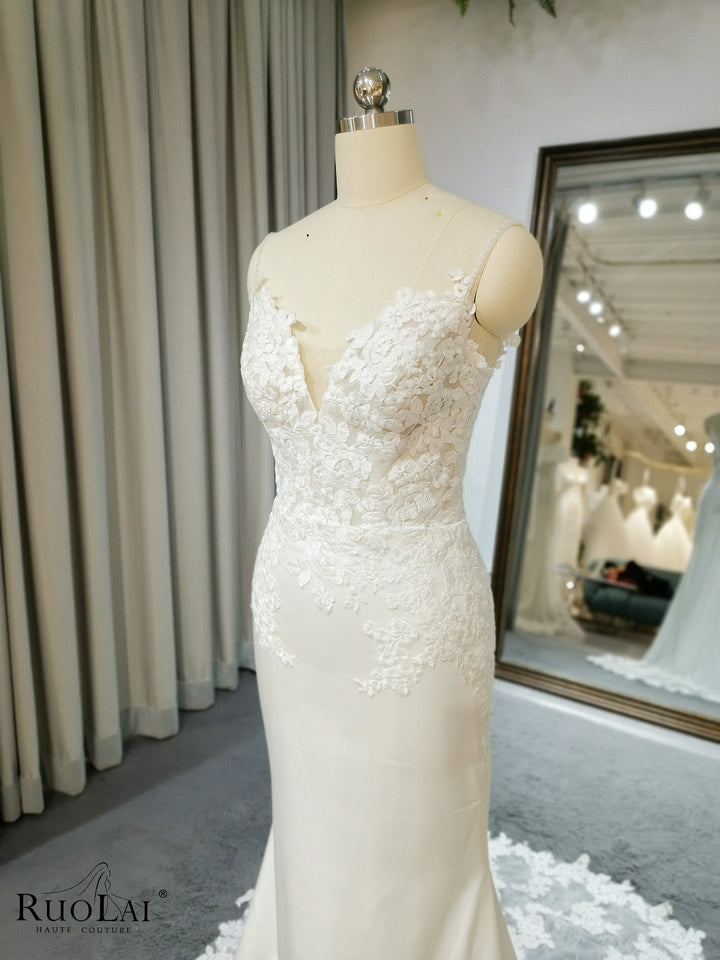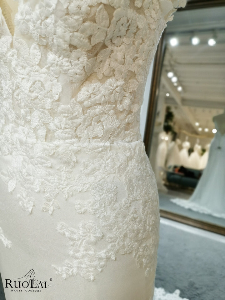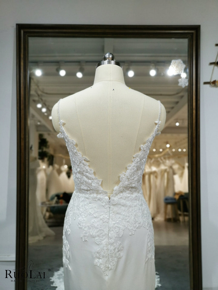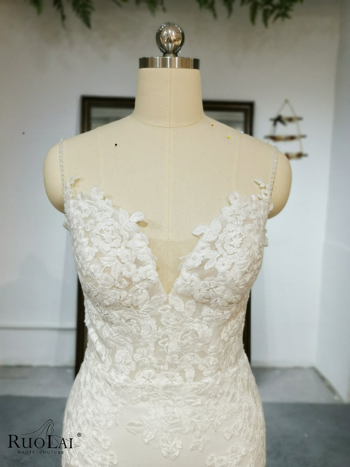 QD06112 Sexy Spaghetti Strap Sweetheart Neck Lace Mermaid Bridal Dress