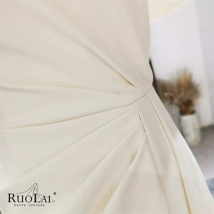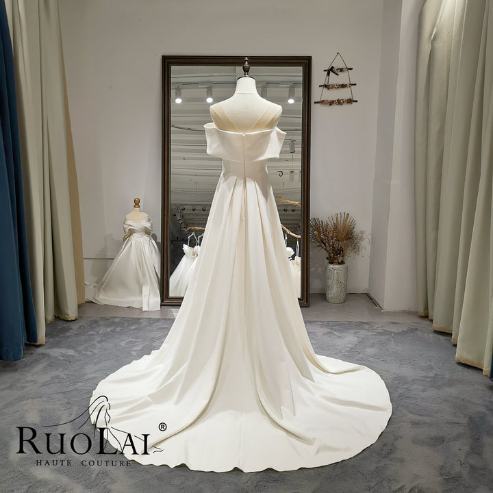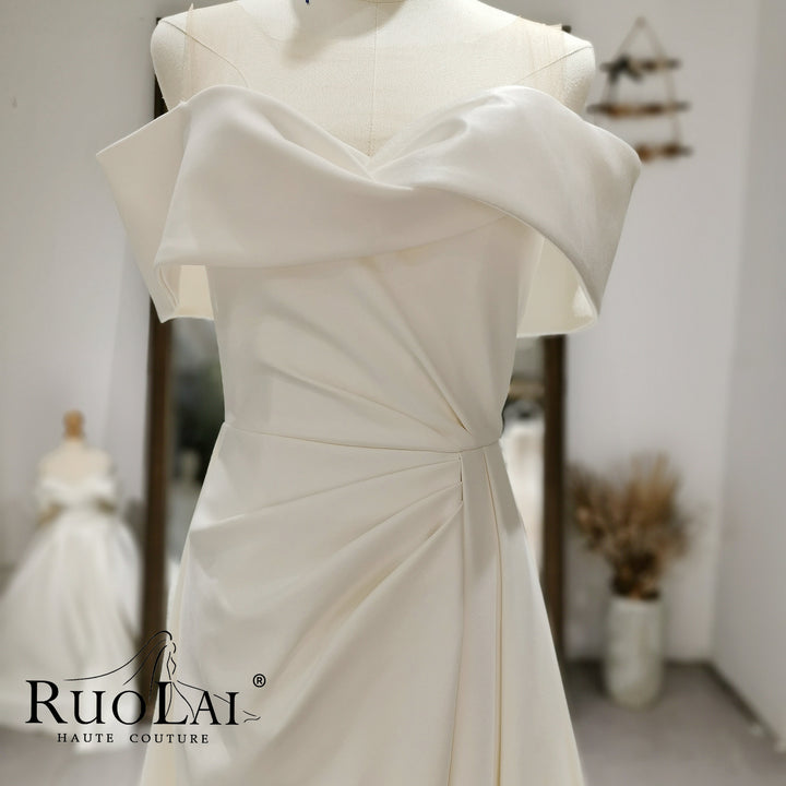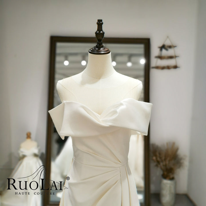 Simple Scoop Off-shoulder Slit A-line Wedding Party Dress