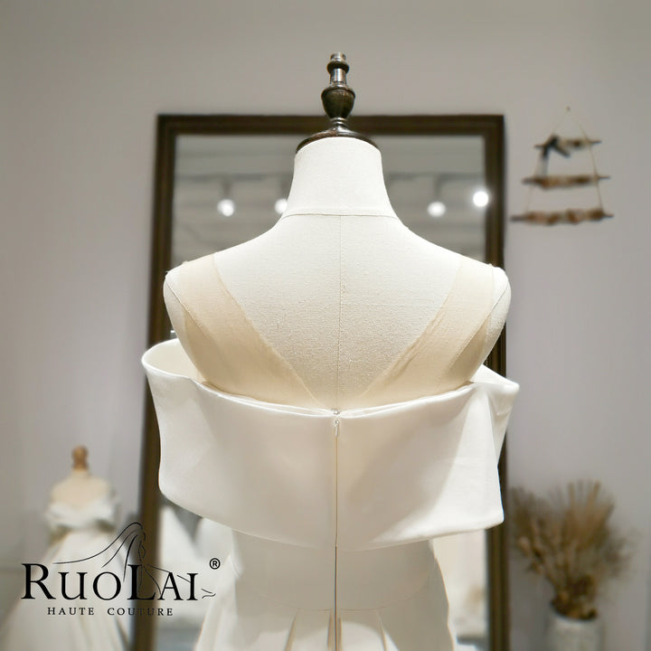 Elegant and simple satin A-line wedding dress, strapless design highlights beautiful collarbone, pleated skirt adds a touch of movement, back zipper design creates a romantic charm.
