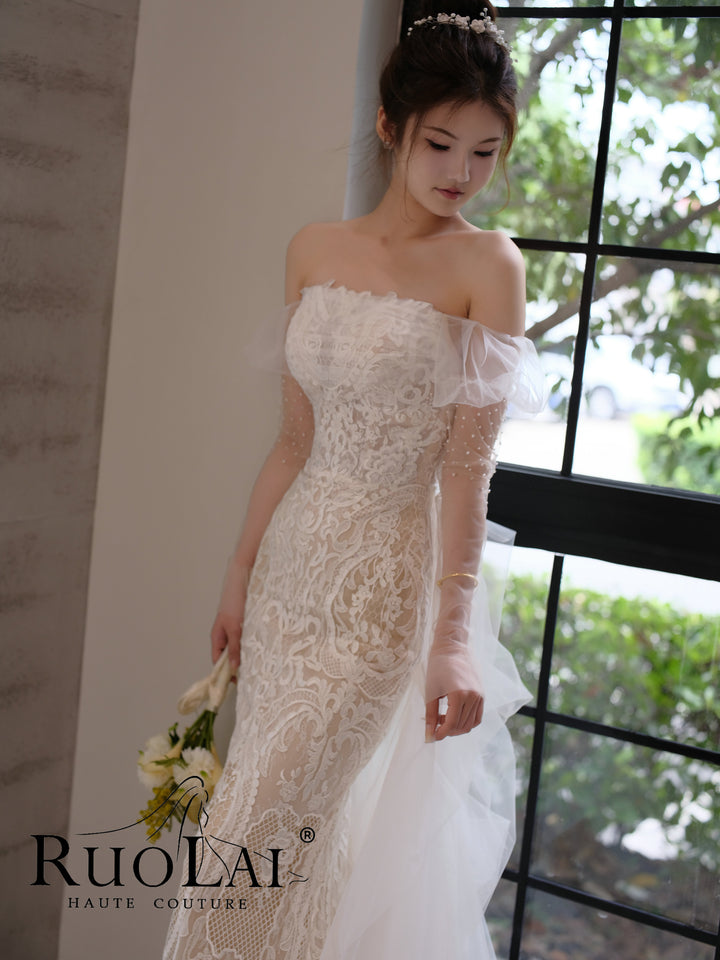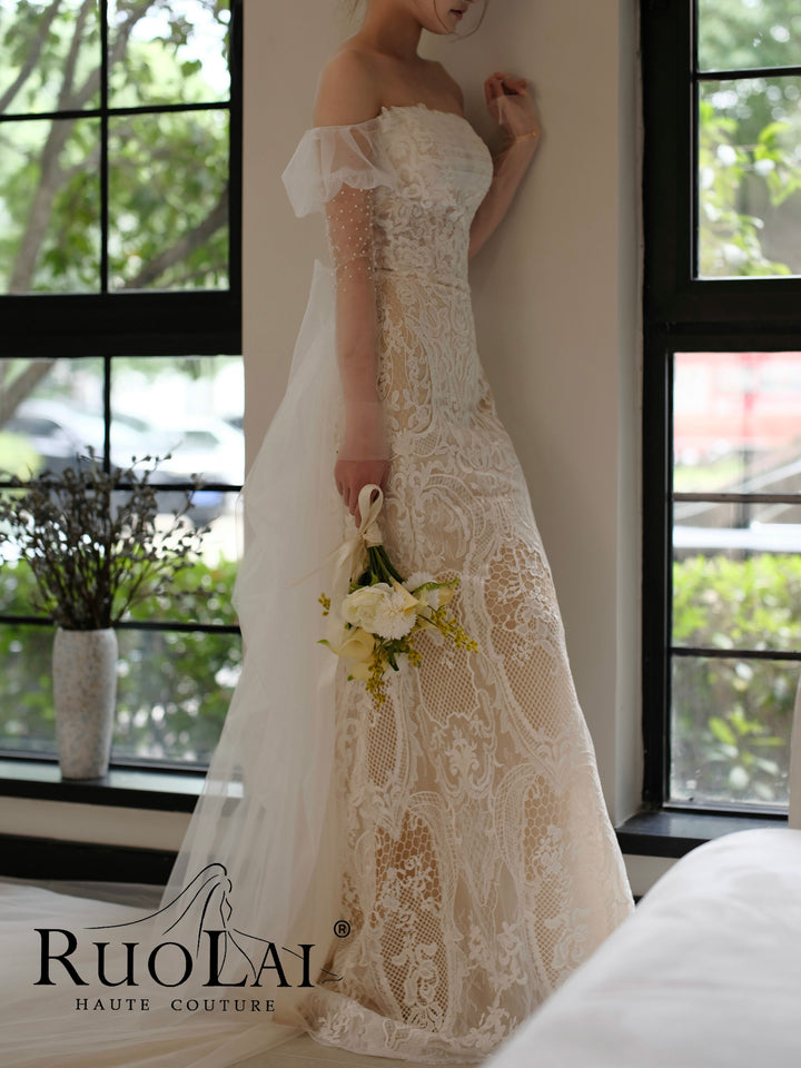 Simple Off Shoulder Lace Mermaid Wedding Dress