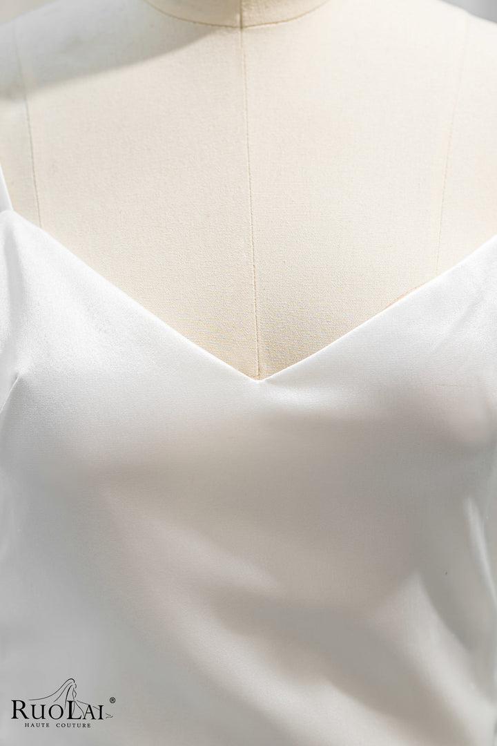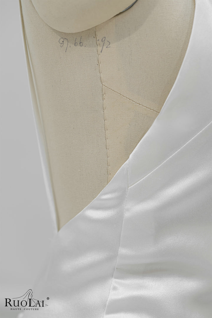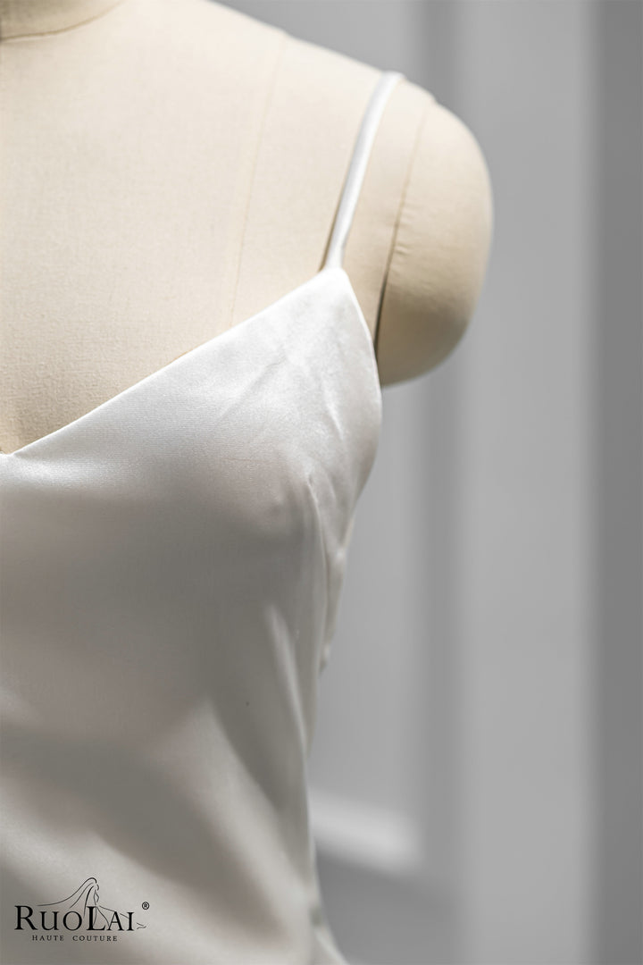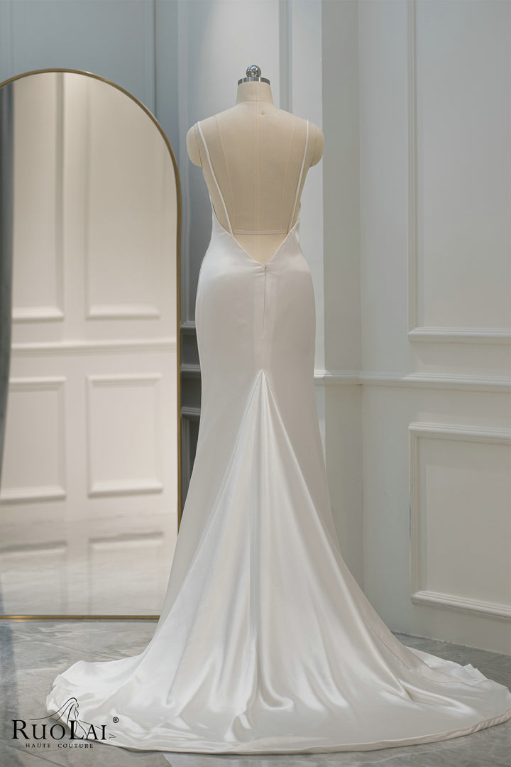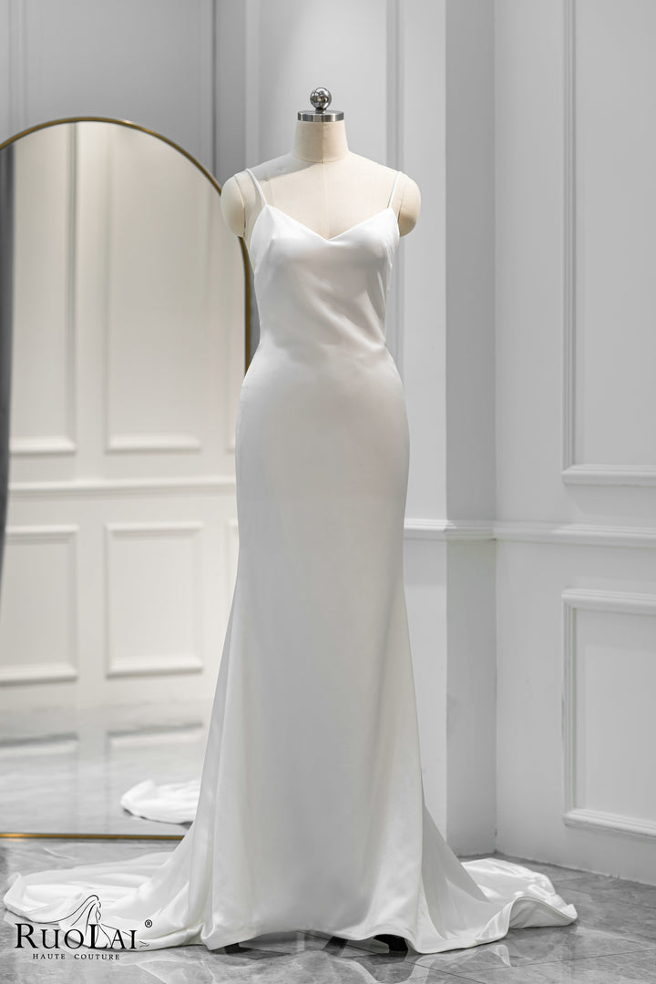 QD06150 Simple Spaghetti Strap Satin Sleeveless Mermaid Wedding Dress