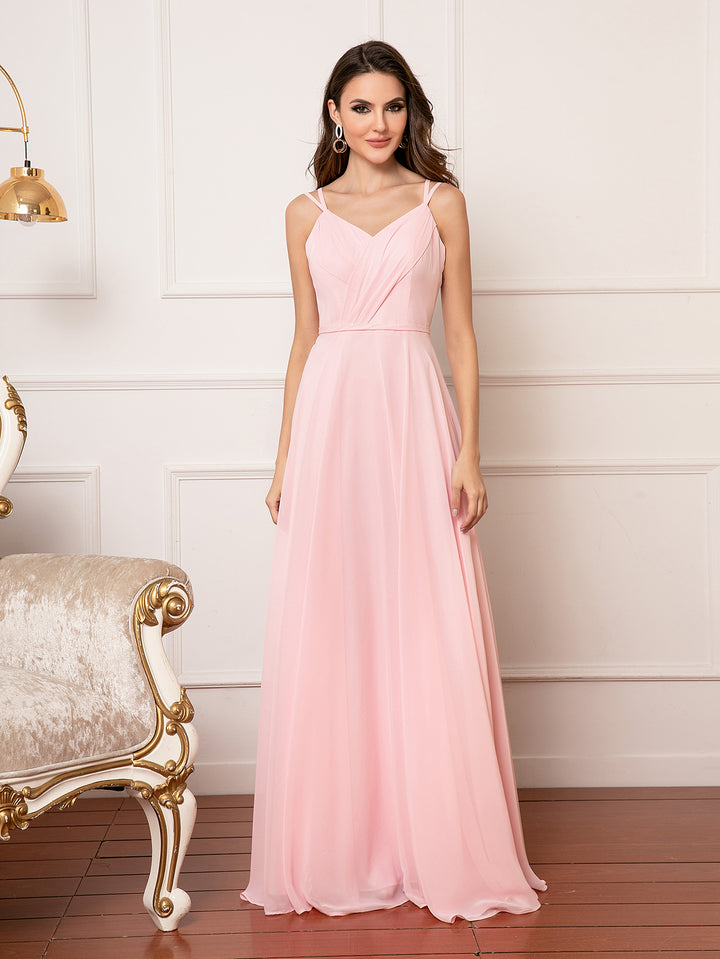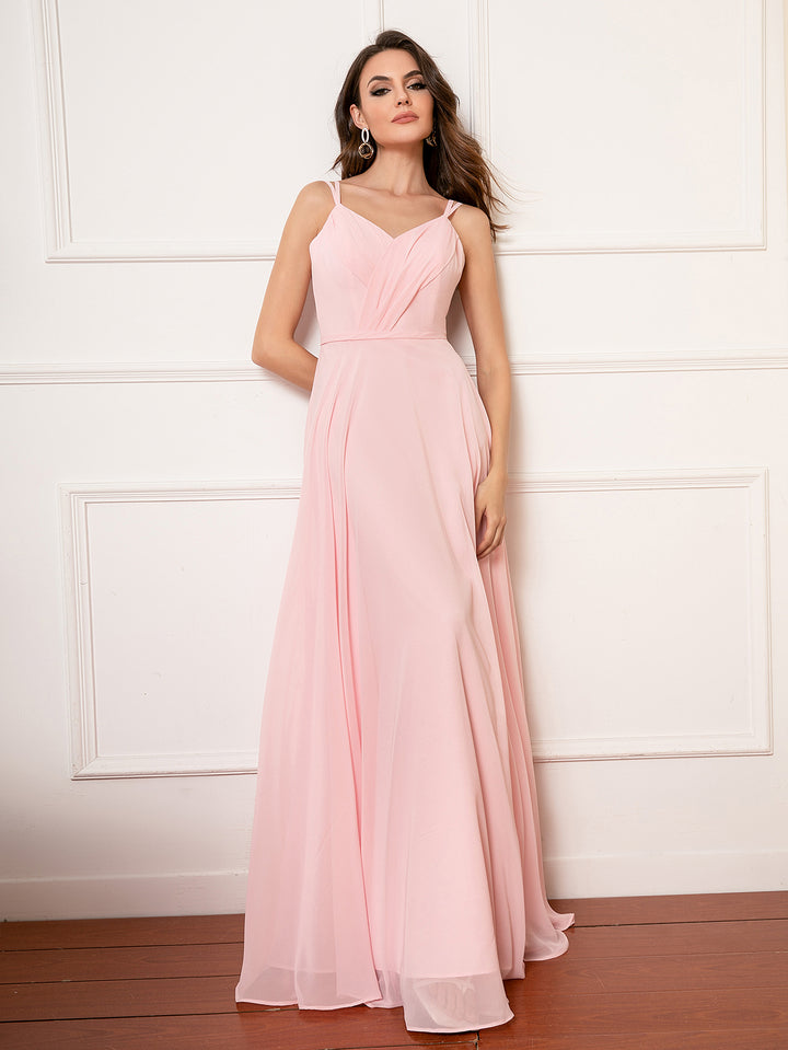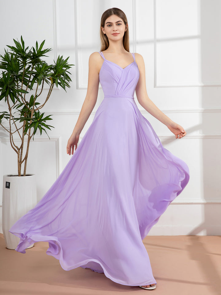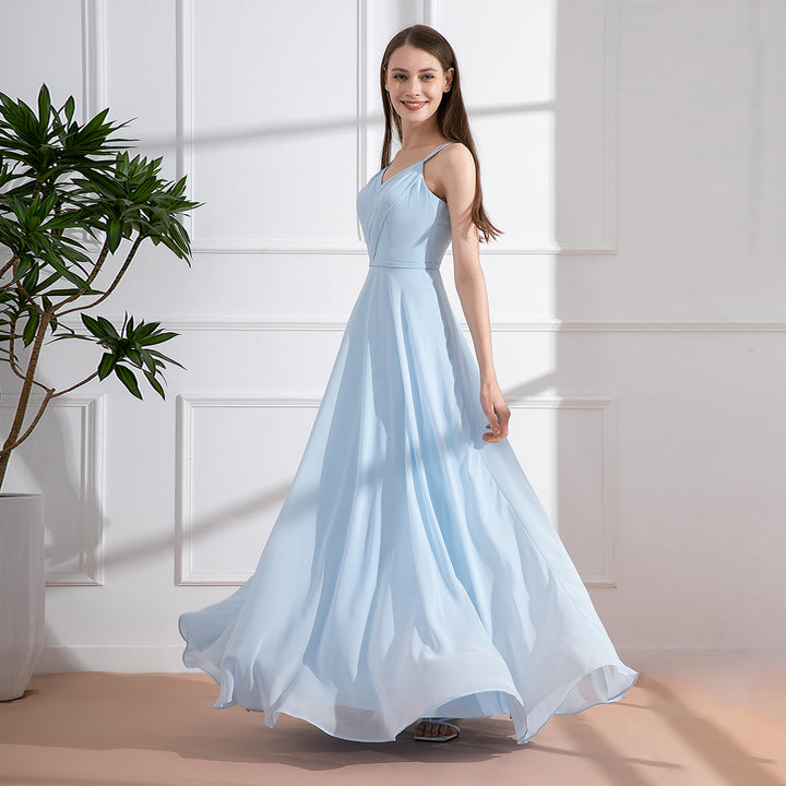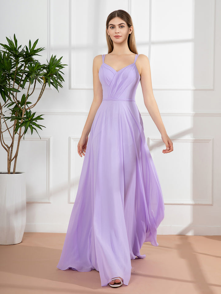 Simple Spaghetti Strap Sweetheart Neck Chiffon Bridesmaid Dress