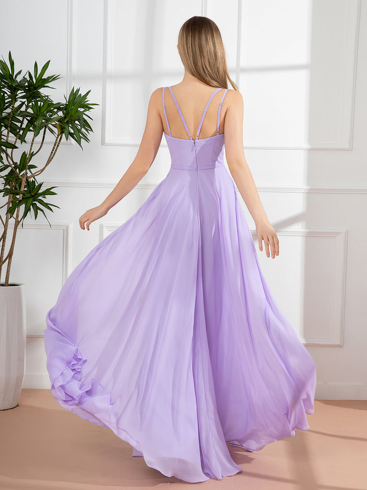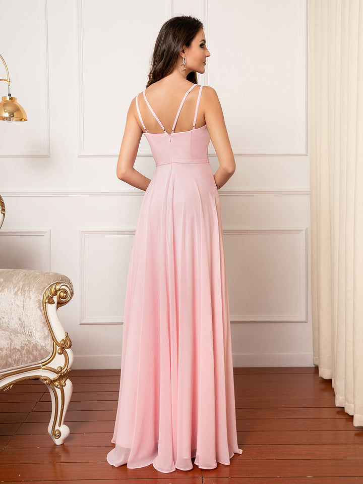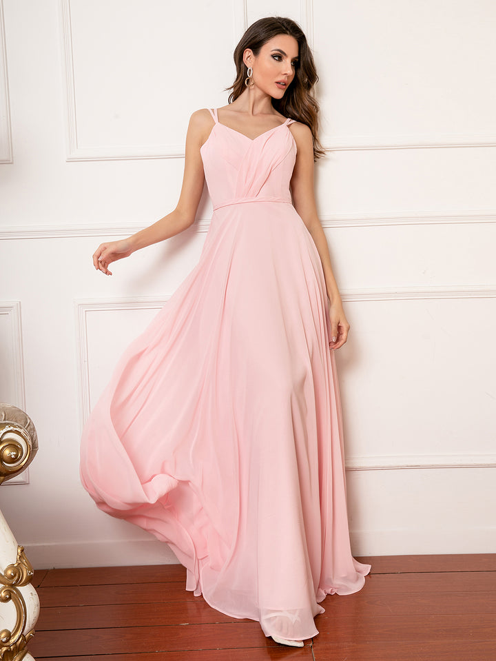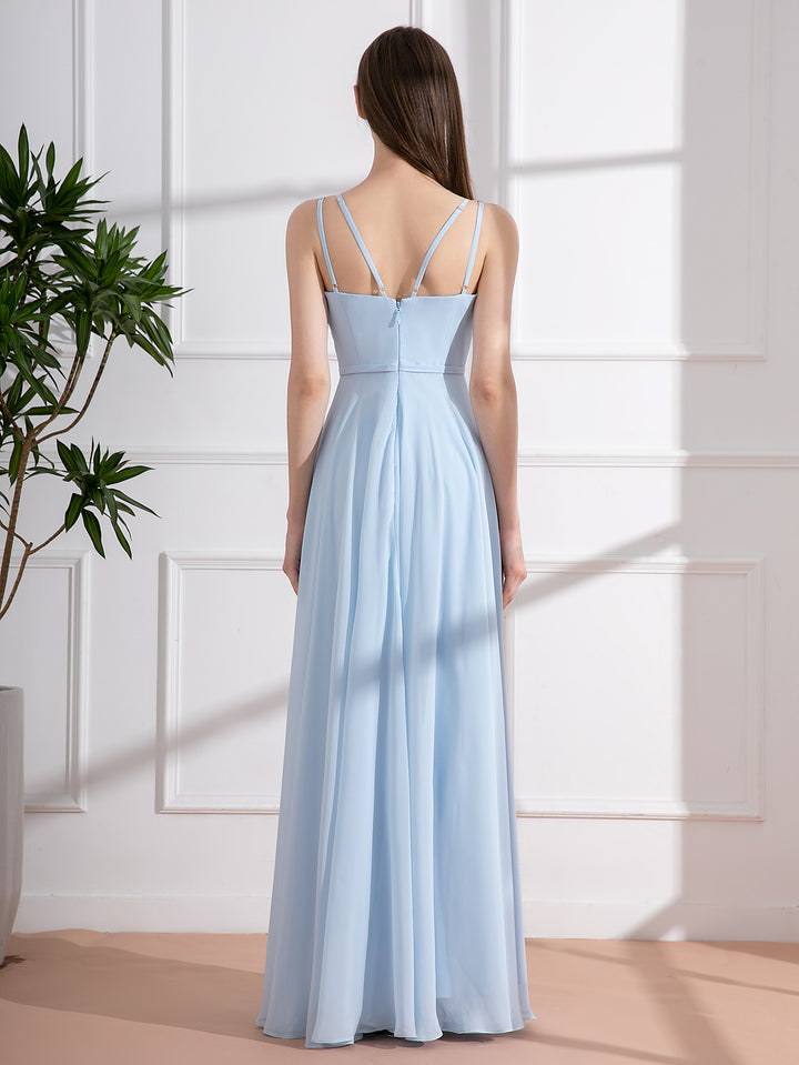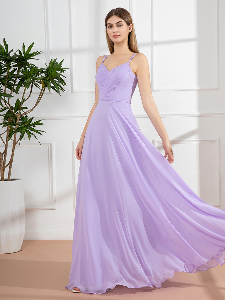 Simple Spaghetti Strap Sweetheart Neck Chiffon Bridesmaid Dress