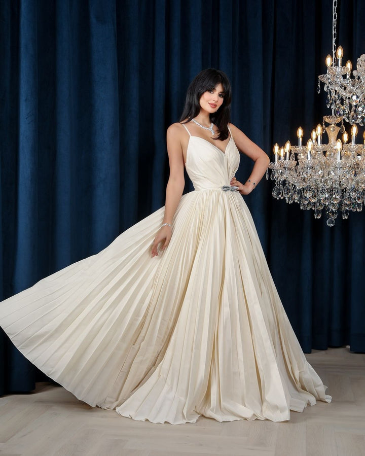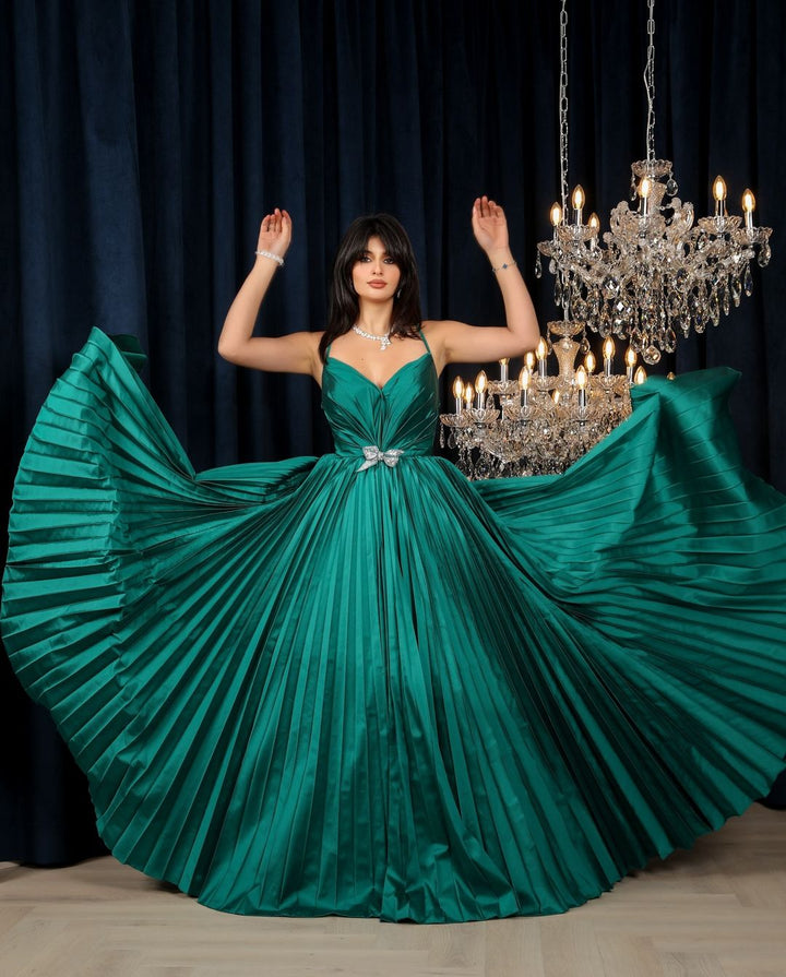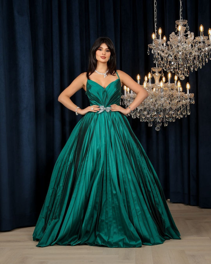 Elegant Spaghetti Strap a Line Dubai Long Evening Dresses Pleat Sweetheart with Bow Party Evening Dress