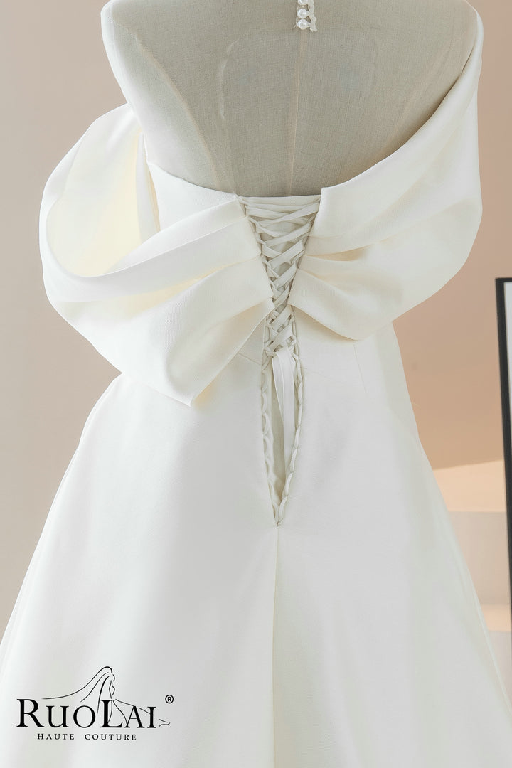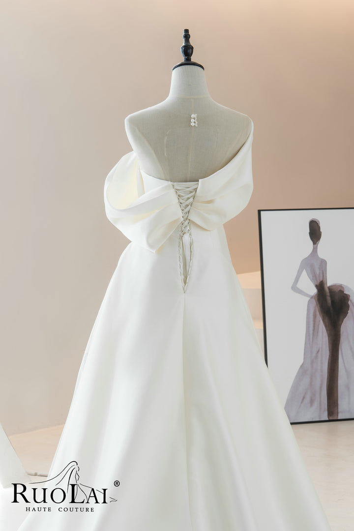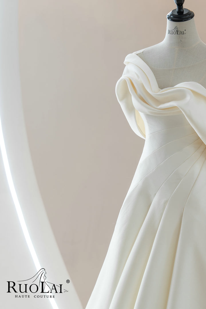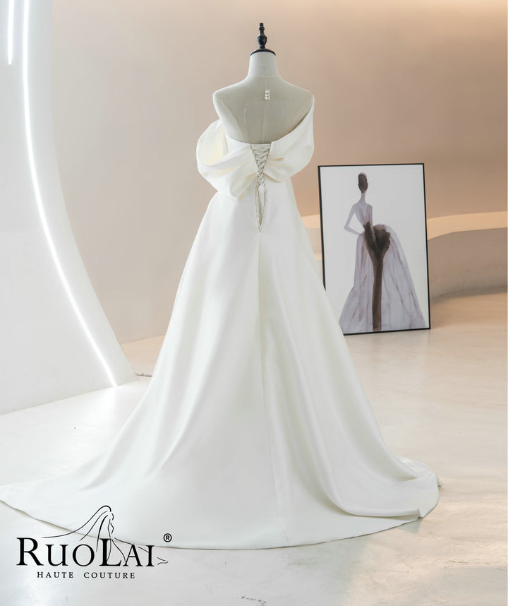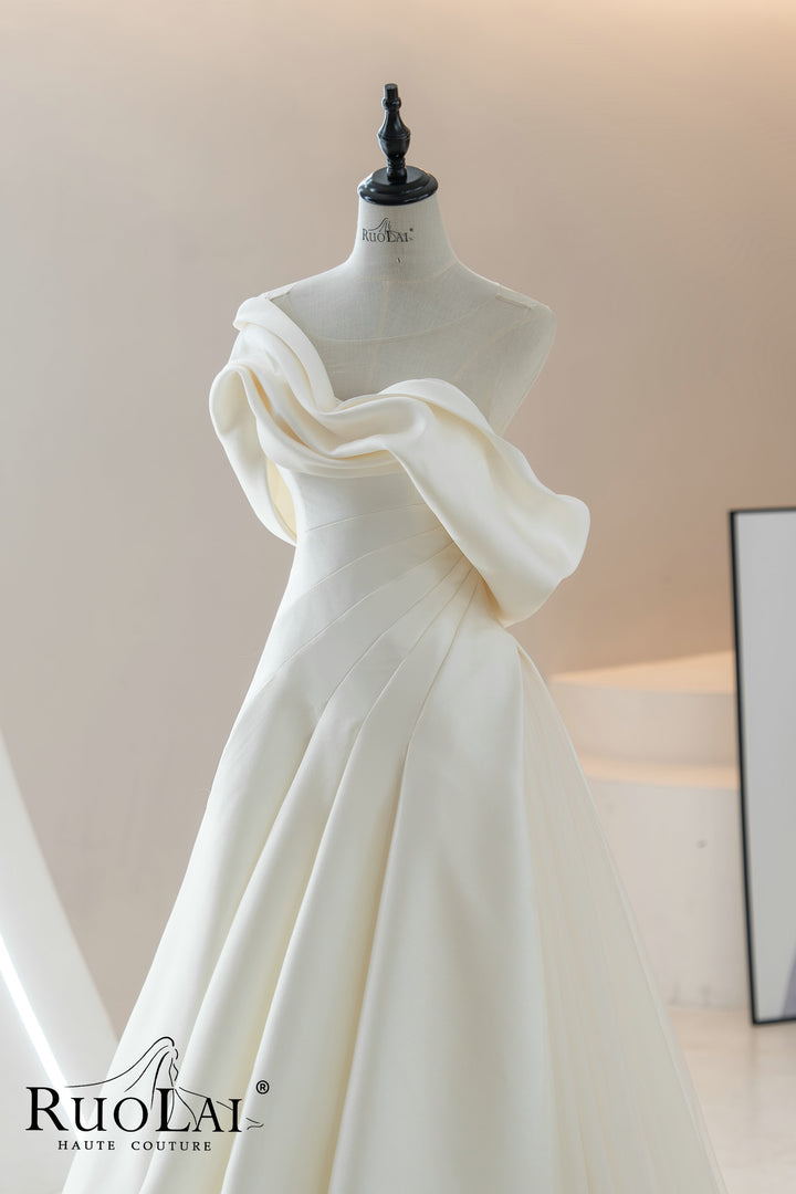 One-the-shoulder Pleat A-line for Women Lace-up Back Bridal Gowns