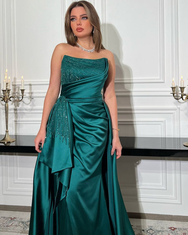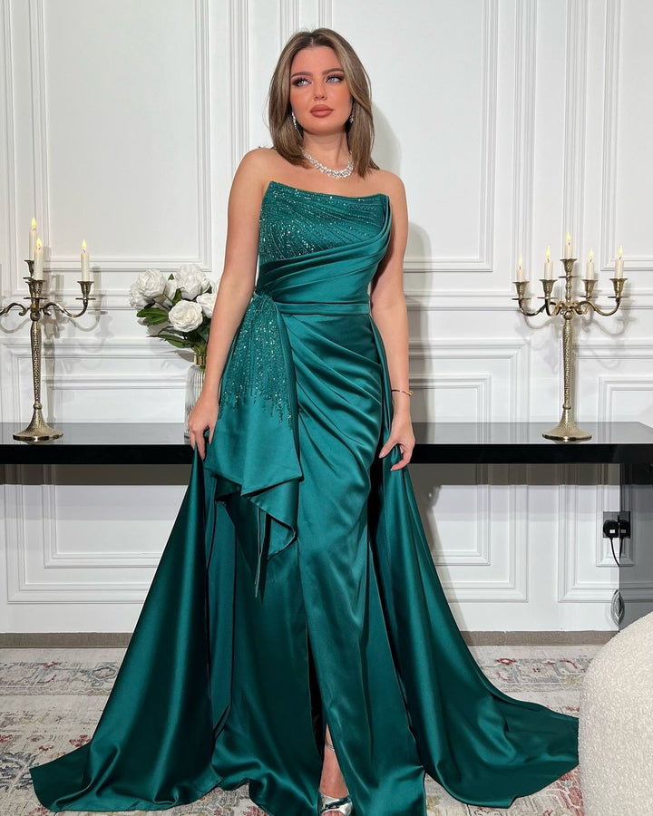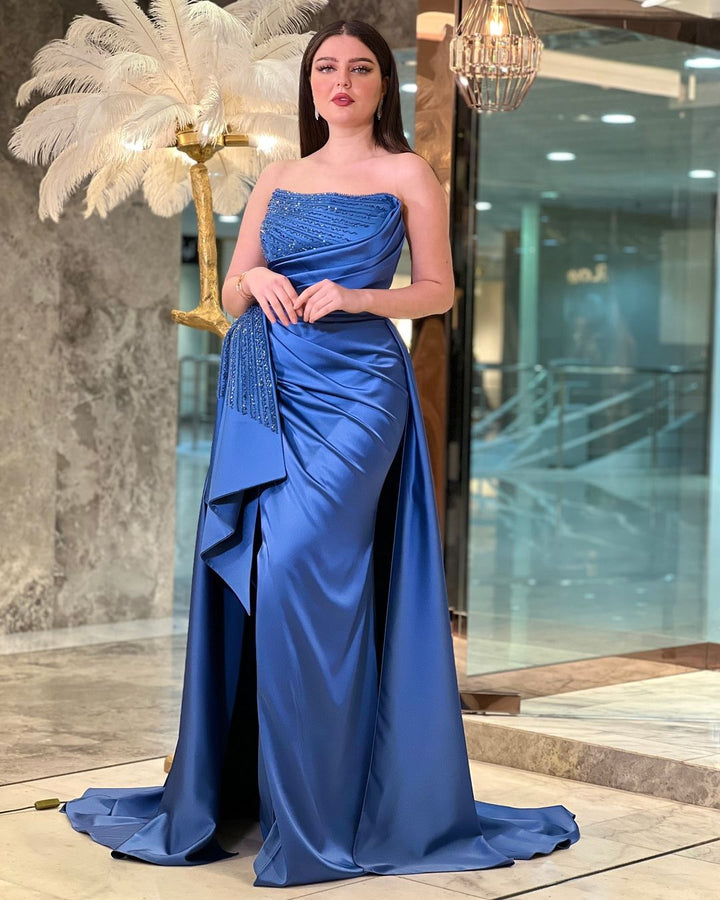 Arabic Mermaid Long Fuchsia Evening Dresses With Overskirt Side Slit for Women Wedding Formal Party