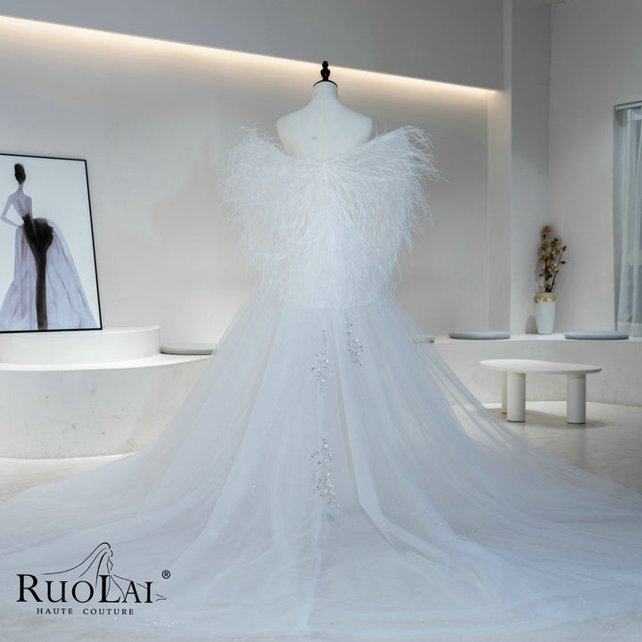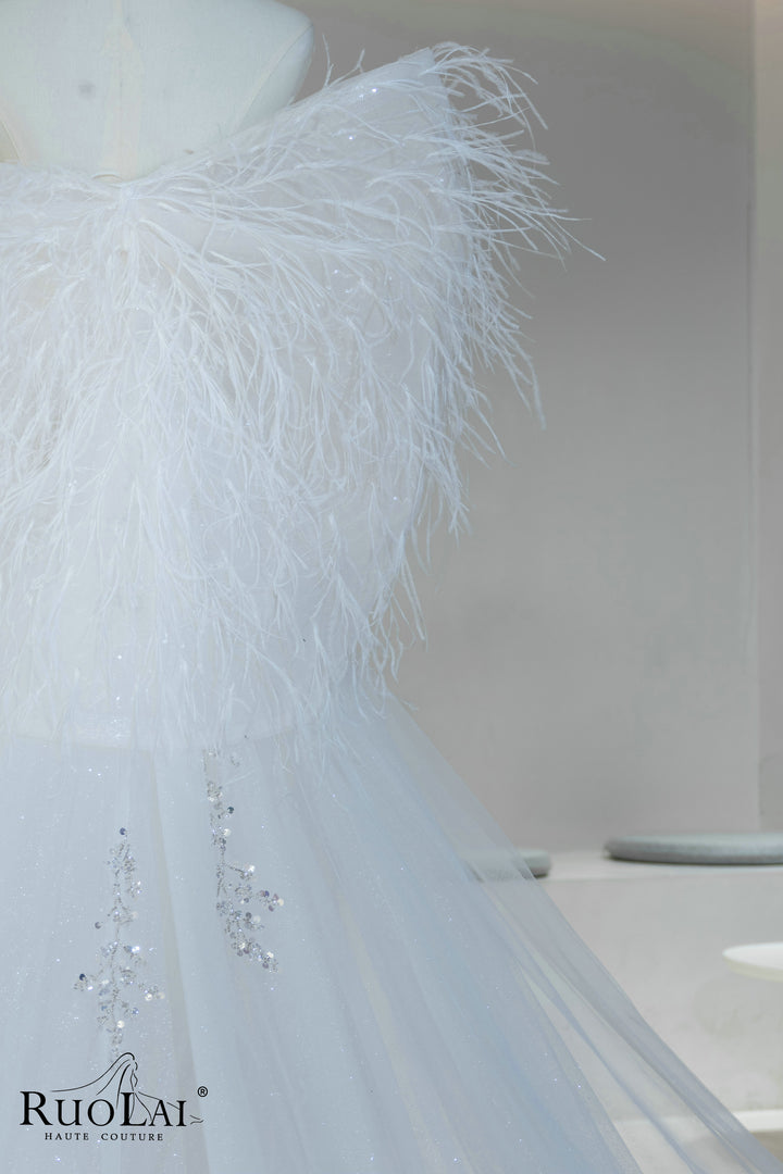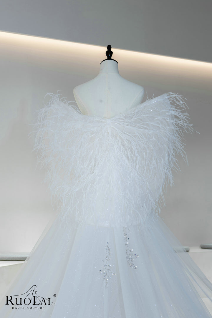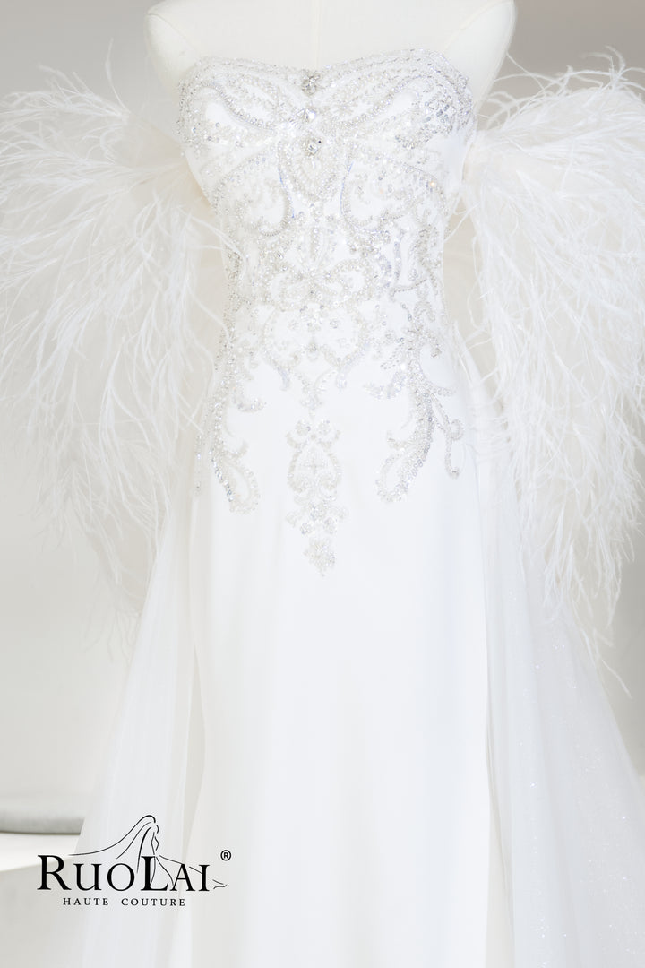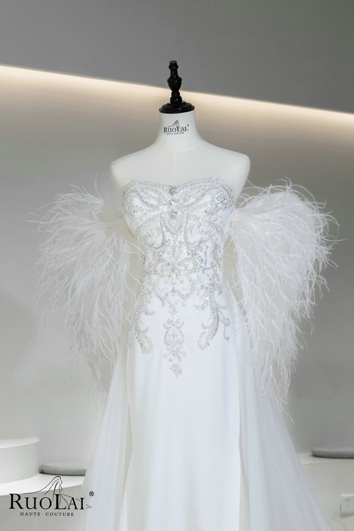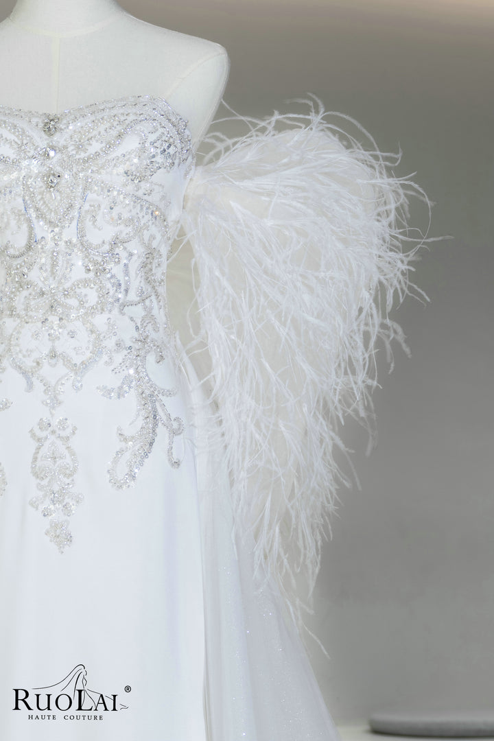 Sparkly Sequins Lace Feathers Mermaid Wedding Dress