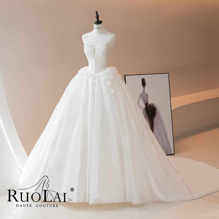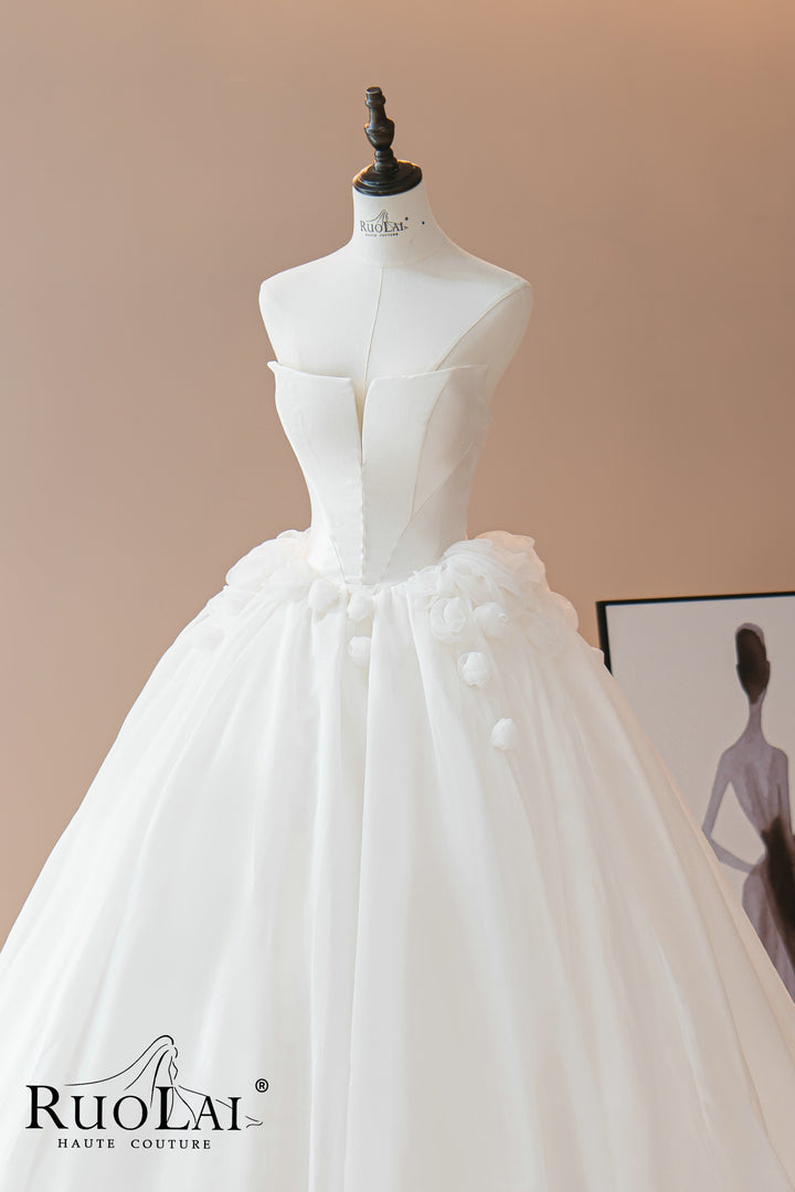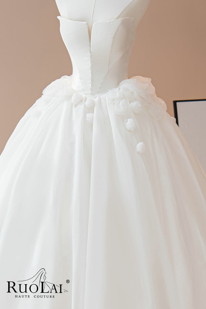 Strapless 3D Flowers Sewed Sleeveless Elegant Wedding Gowns